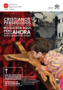 Consecuente con su misión de ayudar a los cristianos perseguidos, la Fundación Pontificia Ayuda a la Iglesia que Sufre (ACN Chile) los invita, el próximo 18 de noviembre, día que la Iglesia chilena instituyó como el “Día de Oración por los Cristianos Perseguidos”, a rezar por todos aquellos que no pueden vivir su fe libremente. Pidamos a Dios que reciban su consuelo y fortaleza para que puedan seguir dando testimonio de su fe.
