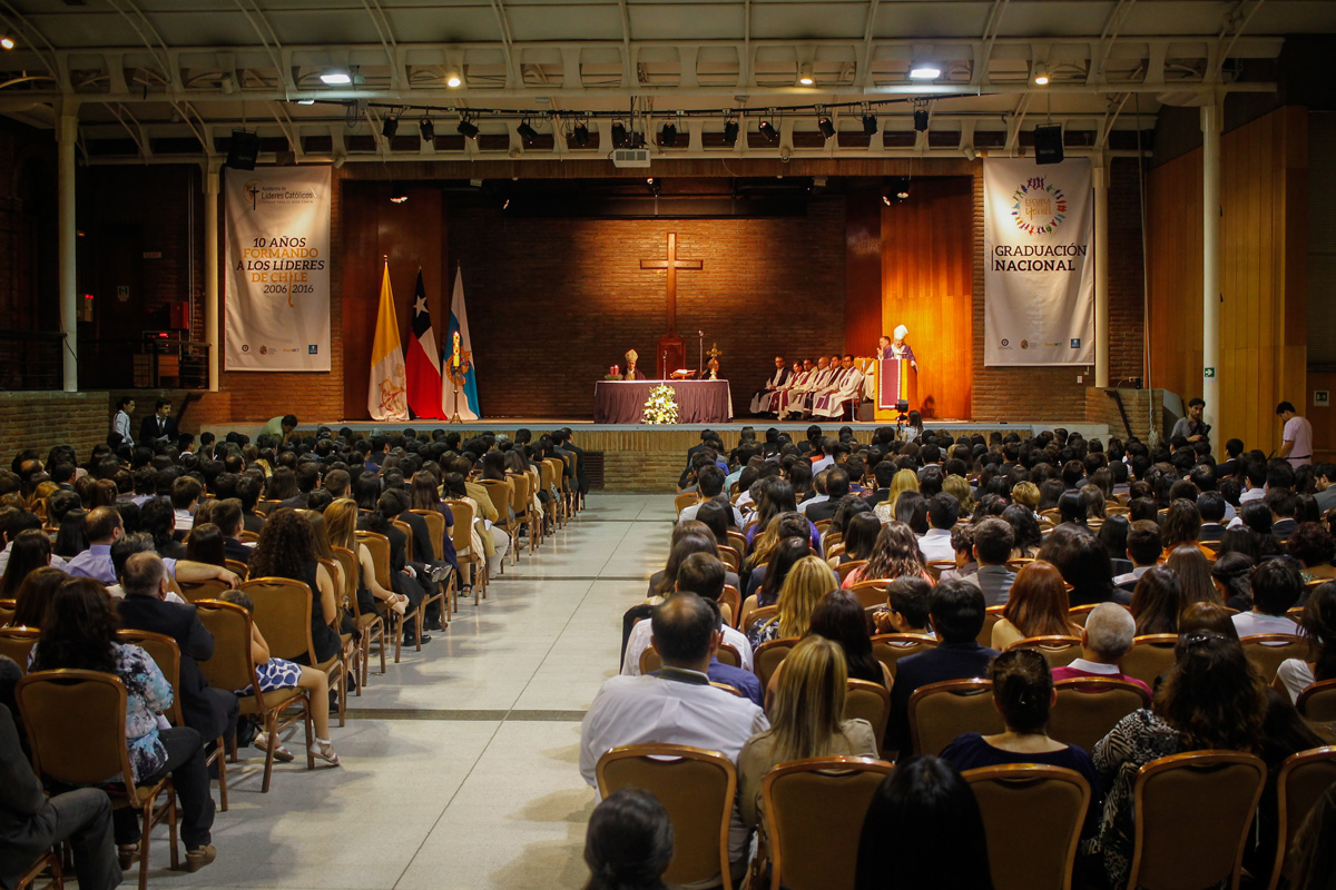 Desde La Serena, Melipilla, Santiago, Valparaíso, Linares, Chillán, Los Ángeles, Puerto Montt llegaron hasta el Centro de Extensión UC para vivir la XI Ceremonia de Graduación de la Escuela de Líderes, que contó con la presencia del Arzobispo de Santiago, Cardenal Ricardo Ezzati.