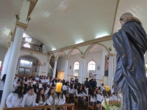 En una emotiva ceremonia religiosa a cargo del Capellán del Colegio Seminario Conciliar de Ancud, Padre Alex Gallardo, en la Iglesia San Francisco se llevó a cabo la Liturgia que despide a los alumnos de 4° Años Medios de las diferentes especialidades de nuestro establecimiento.