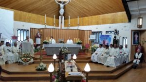 La Eucaristía fue presidida por el Obispo emérito Mons. Juan Luis Ysern, acompañado por case todo el clero diocesano y centenas de personas que estimaban al padre Sergio y vinieron desde muchas comunidades de todo el archipiélago a entregar su cariño.
