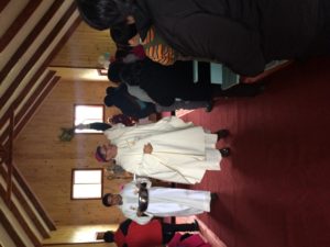 La eucaristía fue presidida por el Padre Obispo Juan María Agurto y concelebrada por el P. Carlos Cárdenas Párroco de Quellón, acompañados por las familias del sector. El P. Obispo destaco el trabajo y la unión de la comunidad, recalcando que lo importante en el cristiano es dar testimonio de la fe en medio de nuestras realidades.