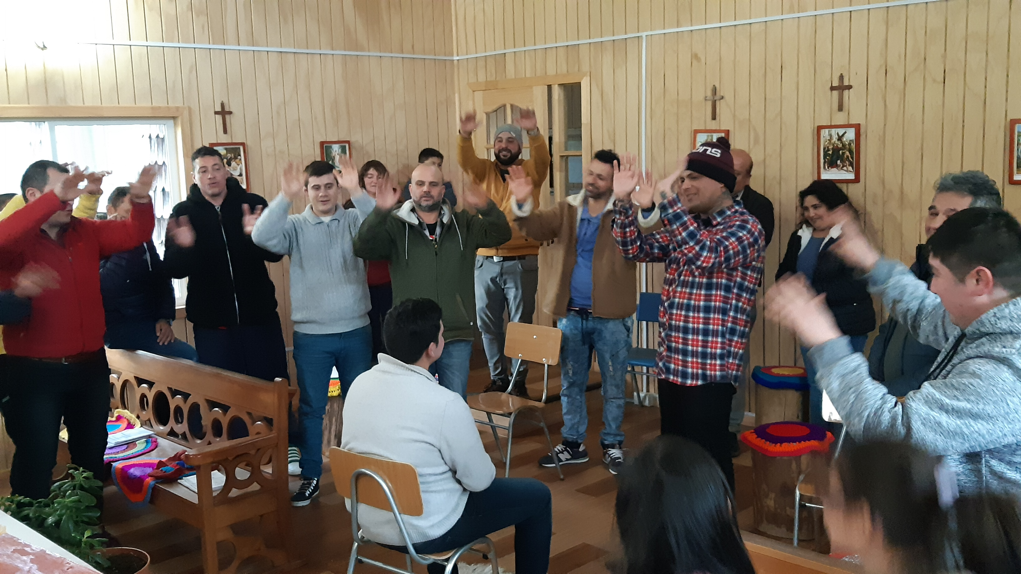 La despedida de más un joven que finalizó su proceso de un año recuperándose de la adicción a las drogas en la Fazenda, se dio en un ambiente de alegría y emoción. Esta vez fue Sebastián, de 21 años, que desde Curicó vino a Chiloé con la esperanza de un cambio de vida, en sus palabras expresó “hoy cumplí mi año en fazenda, me voy a mi casa después de un año en que viví muchas cosas, puedo decir que me voy contento, tranquilo, siento un cambio en mi persona, en mis sentimientos, en la manera de ver las cosas, y eso me hace ir tranquilo, contento, viví muchas experiencias lindas, conocí a buenas personas y me voy con el corazón bien llenito de buenas experiencias y harto cariño de los demás, (…), la verdad que no todo fue fácil, cuando llegué venía muy mal, con mucha pena, pero con el tiempo creo que lo malo fue pasando y me voy lleno de experiencias bonitas de este lugar.”