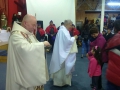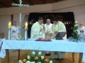 La fiesta eclesial realizada en el Gimnasio Municipal de Curaco de Vélez tuvo su momento culminante en la celebración de la Eucaristía, a las 11:00 horas, presidida por el Padre Juan y concelebrada por Monseñor Juan María Agurto y otros sacerdotes de la Diócesis.