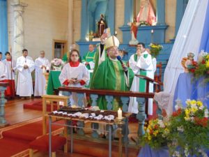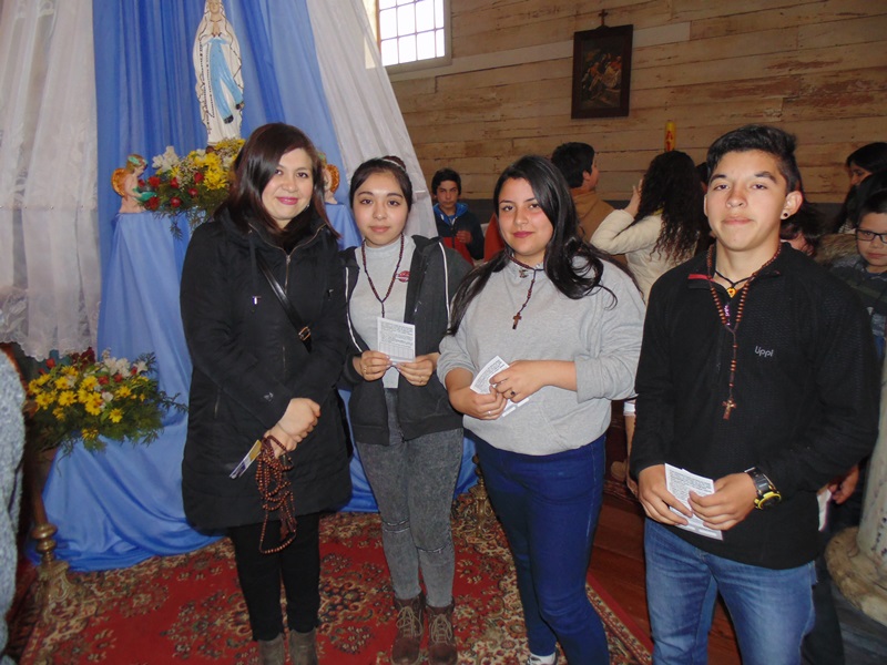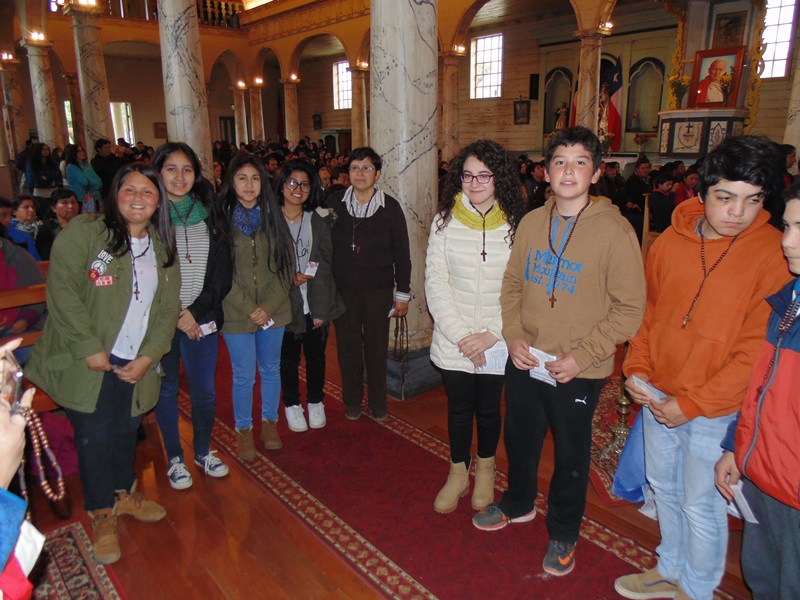 Al finalizar la Eucaristía, Monseñor Agurto bendijo rosarios los que fueron entregados por los catequistas a todos los jóvenes que se encuentran en catequesis de 1ª y 2ª años de preparación para recibir por primera vez la  Comunión y de 1ª y 2ª años de preparación para Confirmar la fe en Cristo.