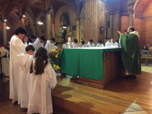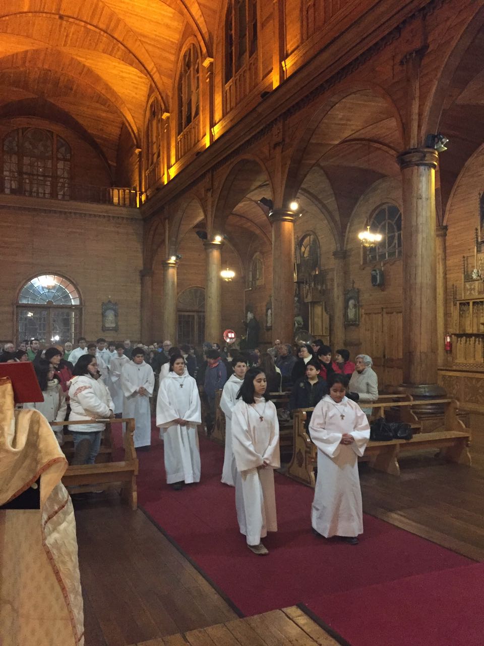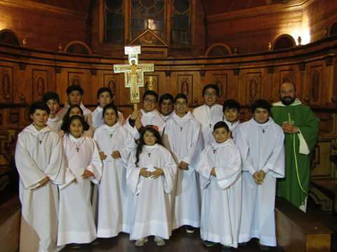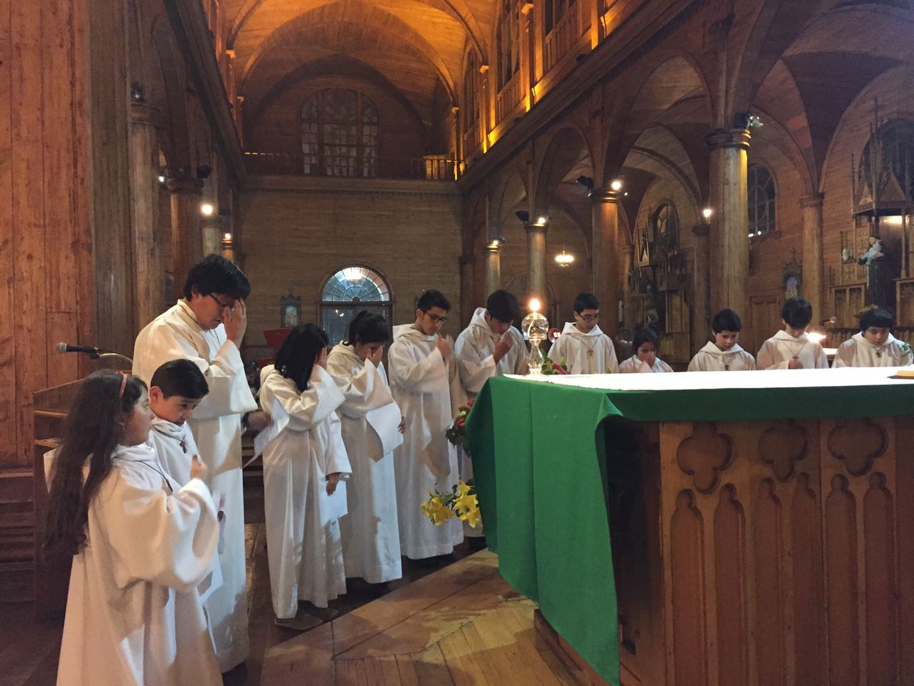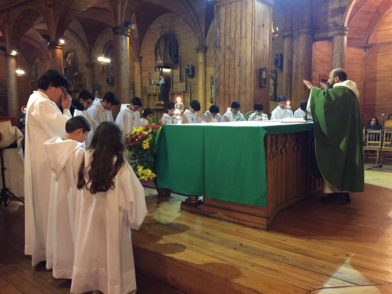 En una Eucaristía el grupo de servidores del altar renovaron su compromiso con la fraternidad de acólitos franciscanos en la Parroquia Apóstol Santiago de Castro, Diócesis de Ancud.
