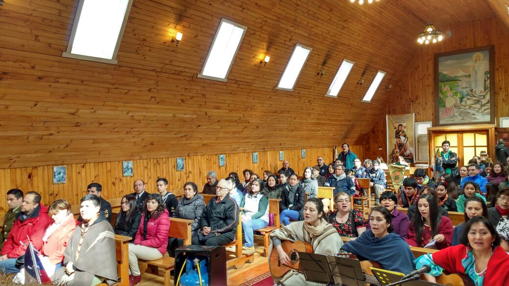 Al inicio de la Misa se hizo la entronización de la Biblia que fue llevada y presentada por una mamá con su hijo, resaltando que septiembre también es el Mes de la Palabra de Dios. La comunión de esta hermosa celebración además estuvo expresada en el coro ya que fue compuesto por personas del coro parroquial, miembros del grupo folclórico Mahuida, grupo folclórico Voces del Chelcho, perteneciente al hospital de Chaitén.
