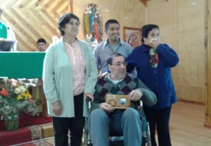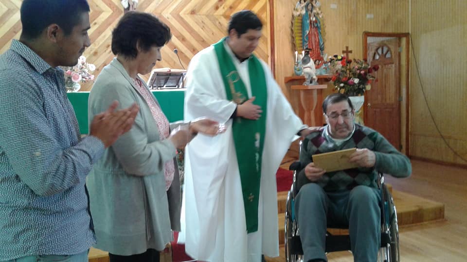 En la misa se recordó y oró por los socios ya fallecidos y también se hizo un reconocimiento y una bendición especial a uno de los pilares fundamentales de la comunidad, Don Hernán Mansilla. En las palabras de la Sra. Doris Asenjo, coordinadora de la capilla, “Mansillita como cariñosamente le decimos nosotros, fue el que sostuvo en pie esta comunidad en tiempos muy difíciles, cuando yo llegue acá él era el encargado de abrir y preparar todo para las misas, él nunca falto ni un solo Domingo, para él ha sido muy difícil estar en silla de ruedas ahora con su enfermedad, (…) su gran sueño lo logró ver cumplido cuando finalmente teníamos lista la capilla, y aunque hubieron tiempos en que venía muy poca gente, nunca se cansó seguía con perseverancia su fe y su labor, él para mí y para nuestra comunidad es un verdadero ejemplo a seguir, un gran hombre de fe”.