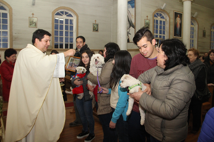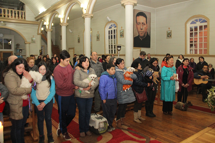 La Iglesia San Francisco perteneciente a la Parroquia El Sagrario de Ancud celebró a su Patrono este día 04 de Octubre, en una Eucaristía donde se bendijo de manera especial a las mascotas, perros, gatos, cordero, entre otros. Todas “Criaturas de Dios y nuestros hermanos” decía San Francisco a quien se le saludó con varios pies de cueca esta noche.