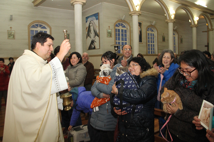 Como es ya tradicional, cada año, las familias se reúnen con sus animales de estimación en torno al altar para celebrar la fiesta de San Francisco de Asís en Ancud.