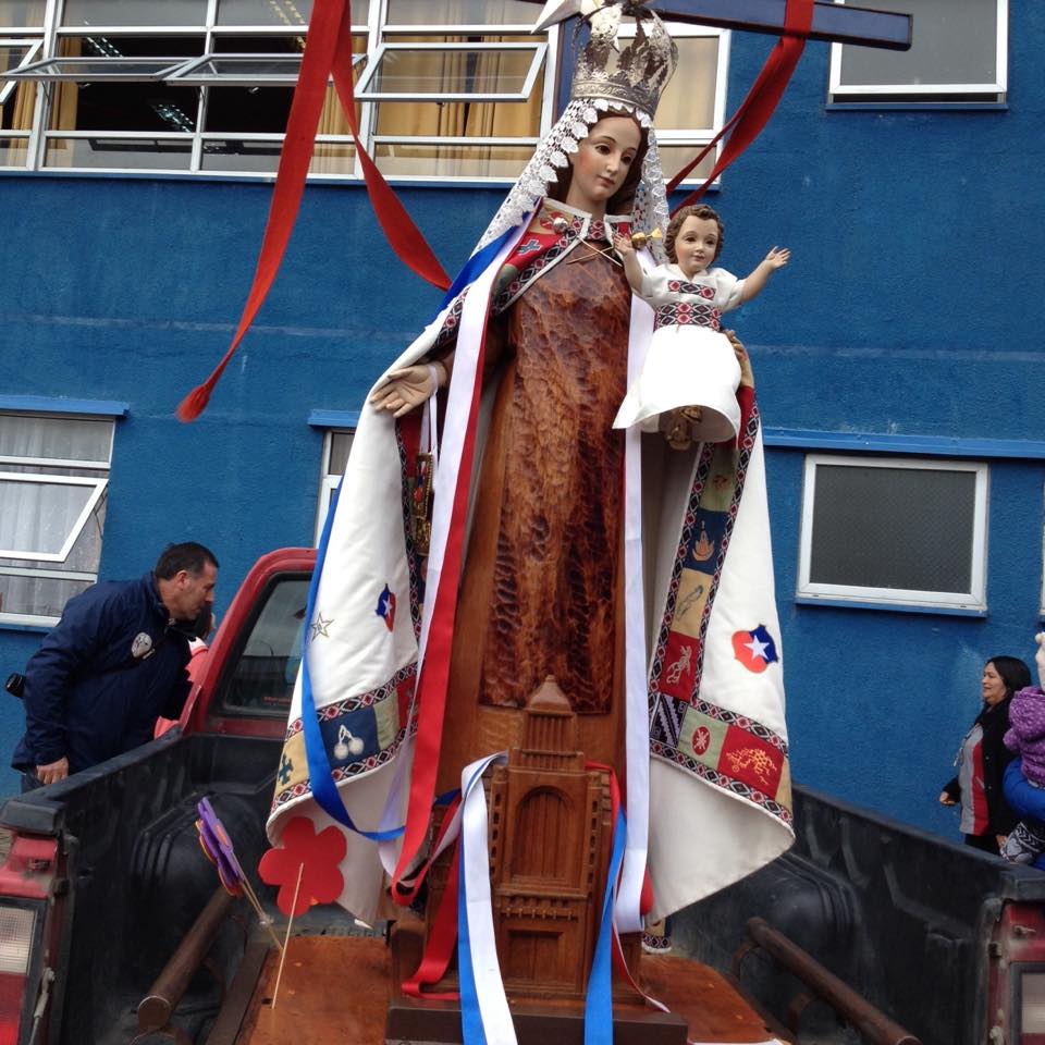 El día viernes 2 de octubre, a las 8:00 de la mañana la imagen salió de la Parroquia para dirigirse hasta el Colegio Traf-Tremun, quien recientemente sufrió la pérdida en un 100% de su infraestructura producto de un incendio. La imagen siguió con rumbo a la ciudad de Castro.