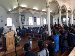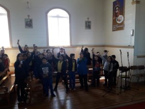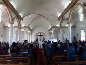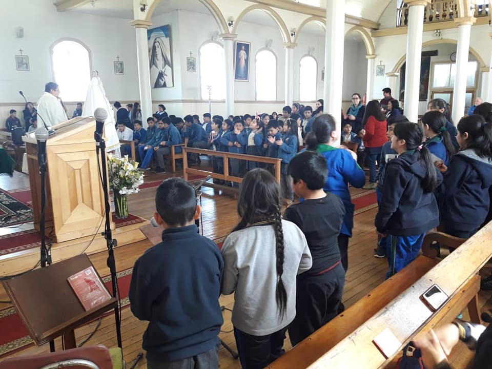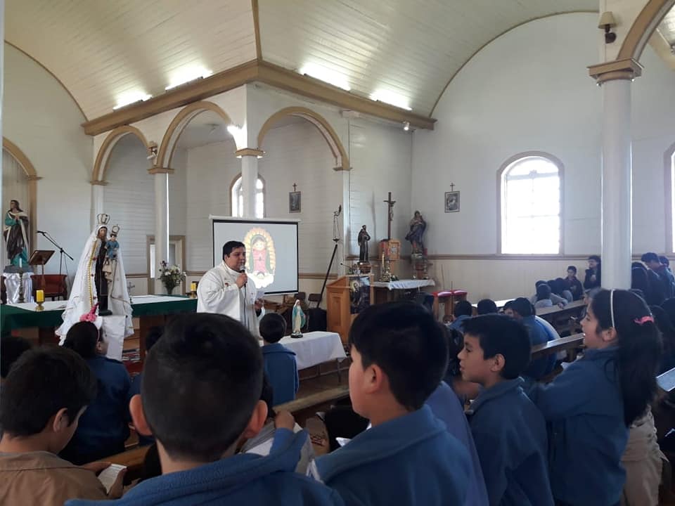 En la sede parroquial el día 08 de Noviembre, los establecimientos que respondieron a esta invitación y participaron fueron: Colegio Seminario Conciliar, Liceo El Pilar, Escuela Llequen, Colegio San Sebastián, Escuela Pudeto, Escuela Yerbas Buenas y Escuela de Pilluco. Los estudiantes se reunieron en un clima de oración, pero también con alegres dinámicas y cantos alabaron al Señor y conocieron un poco más a Nuestra Madre.