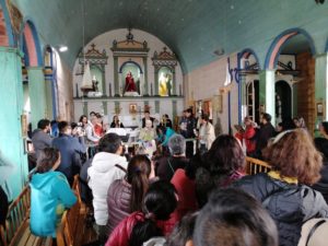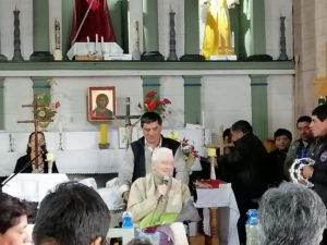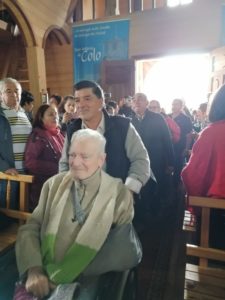 El día Domingo 16 de Febrero, el “cura obrero” Mariano Puga Concha que está celebrando sus 60 años de sacerdocio vino a la Comunidad de Colo, Comuna de Quemchi, donde se reunió con gran cantidad de fieles para acompañar este momento de alegría. A pesar de su enfermedad hizo un esfuerzo grande para estar con sus amigos chilotes, especialmente los fiscales, sotafiscales y encargados de Capillas, grupo con el cual el sacerdote trabajó por muchos años, entregando formación y motivando esta área pastoral.