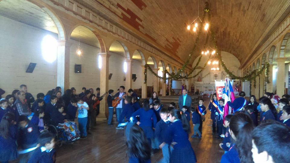 Cómo es tradición los niños del Colegio de Quinchao se preparan para participar de la gran fiesta a la Inmaculada Concepción de María.