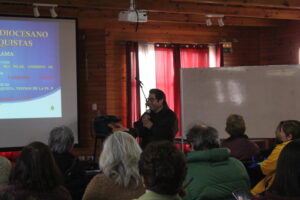 Desde muy temprano por la mañana comenzaron a llegar los distintos agentes pastorales que bajo el lema “Catequistas, testigos de la Fe, agente transformador” fueron convocados a compartir y recibir conocimientos brindados por 3 grandes expositores. La Jornada que comenzó con el saludo de nuestro padre obispo quien además presento Pilar Hernández Rodriguez la primera expositora de la jornada, Pilar es parte del comité de prevención de abusos de la Conferencia Episcopal de Chile. Durante el transcurso de una hora pilar expuso el trabajo del comité y entrego a los asistentes herramientas para la prevención de abusos, hizo la invitación a hacer los cursos de prevención de abusos, dando a conocer que como iglesia tenemos que cuidarnos y cuidar a nuestros hermanos.