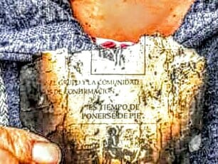 Además un hecho bastante providencial, se podría decir, porque por la fe vemos los signos de Dios, es que se encontró entre los escombros, un pedazo de papel, que según indican sería de las Sagradas Escrituras y dice “Es tiempo de ponerse de pie”, el trozo de papel fue encontrado por dueña Gina Camus. La frase ha animado a los miembros de esta comunidad a empezar desde ahora la lucha por reconstruir su capilla.