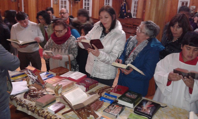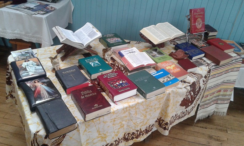 En la Parroquia San Juan Pablo II, de Nercon, junto al apoyo de nuestro párroco el padre Edito Raín, se montó una exposición de Biblias y además un pequeño taller, con el objeto de motivar a la oración con la Biblia.