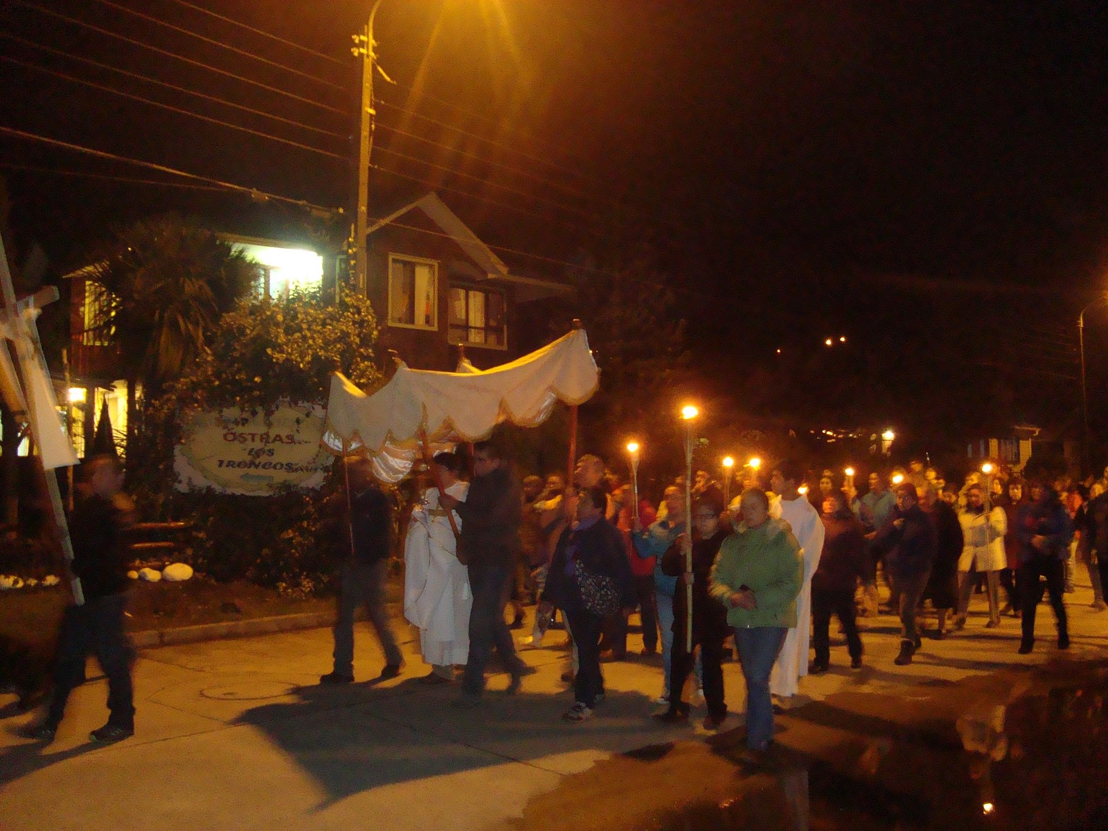 Este domingo 29 de Mayo se celebró en la Parroquia San Judas Tadeo de Curaco de Velez, Diócesis de Ancud, la fiesta de Corpus Christi. La festividad del Cuerpo y la Sangre de Cristo estuvo marcada por la adoración eucarística que empezó dentro del Templo, luego se reunieron los feligreses y salieron en procesión hacía la costanera del pueblo de Curaco.