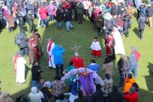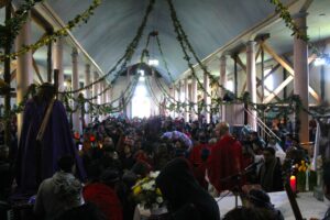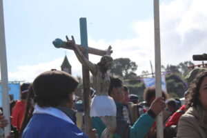 Terminada la Eucaristía central presidida por el presbítero José Andrade (Vicario general de nuestra Diocesis),  los patrones de las imágenes y comunidades comienzan a preparar sus imágenes para la procesión, la cual será encabezada por cruz mayor, banderas, estandartes e imágenes se forman en la explanada del santuario, todos esperan la salida de la imagen de Jesús Nazareno, al son de los pasacalles comienza la procesión, fiscales y fieles van tras el Nazareno cantando los tradicionales Gozos, al volver al templo se entona la salve y el celebrante da la bendición.