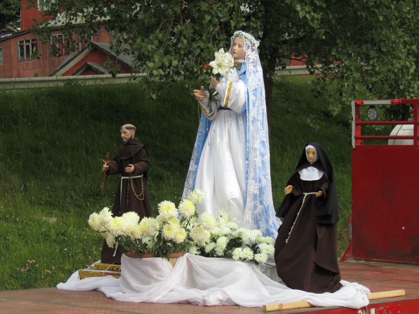 Este día, iniciamos con una procesión desde el puente de Ten-Ten donde nos reunimos con las distintas comunidades de la Parroquia cada una con sus imágenes que trajeron desde sus capillas. Luego nos dirigimos hacia el Templo San Francisco donde se celebró una Eucaristía, la cual fue presidida por el Fr. Pedro Cisternas, acompañando por gran número de feligreses.