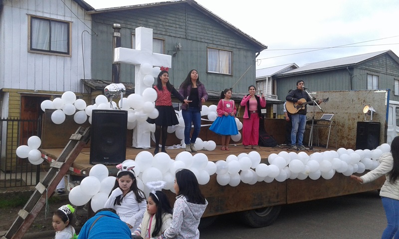 Este año no fue la excepción, fue así como en la plaza de Villa Chiloé, se celebró esta fiesta con un entretenido espectáculo con canciones cristianas y entretenidas dinámicas tanto para niños, jóvenes y adultos, se repartieron sobres con estampillas de diferentes santos católicos y también muchas golosinas y caramelos. Los niños llegaron disfrazados de ángeles, pastores y animalitos de la creación.
