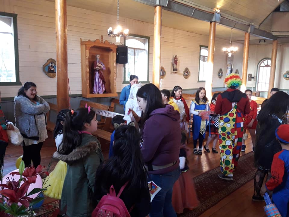 También en Quemchi se quiso celebrar junto a los niños de la catequesis familiar y otros niños de la comunidad. Según Yessica Ojeda, catequista, “celebramos la fiesta de la luz y de la vida, actividad que contó con la presencia de los niños de Catequesis y demás niños que se sumaron, los cuales participaron con mucho entusiasmo y alegría, queremos agradecer a las personas que nos recibieron en su casa o negocio y nos dieron muchos dulces, igualmente agradecer a los padres, jóvenes, tío Andrés y tía Marta por su ayuda y colaboración.”