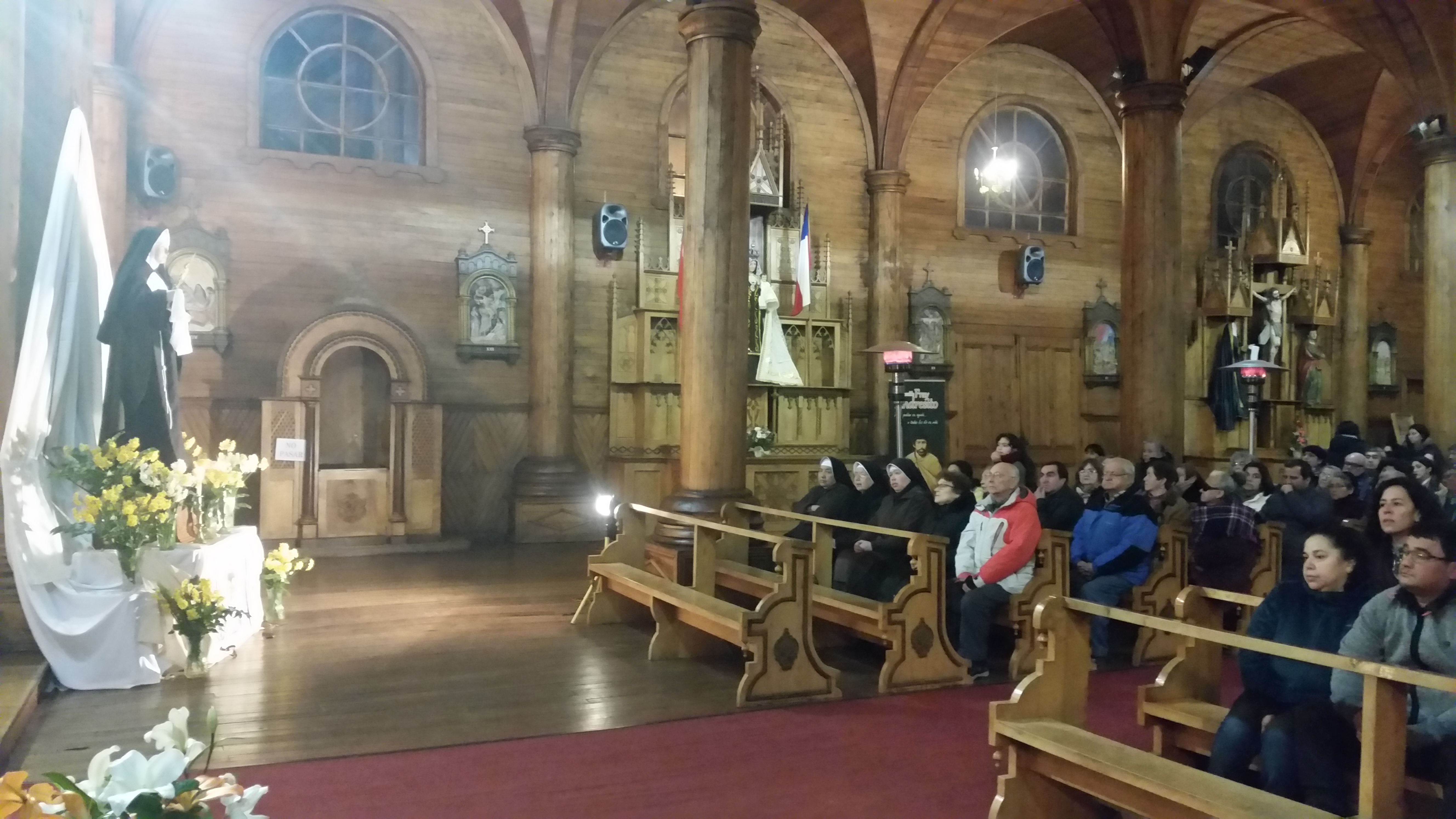 El día sábado 11 de Agosto, los hermanos franciscanos de Castro, celebraron a su madre en la fe, Clara de Asís, con una Eucaristía y posterior procesión por la plaza de armas. La misa, con el Templo repleto de fieles, fue presidida por el sacerdote Manuel Alvarado ofm, concelebrada por el párroco Julio Campos ofm. En las palabras del celebrante en la homilía, destacó la importancia de esta celebración para la familia franciscana, contando un poco de la biografía de esta gran santa de la Iglesia y que fue la sostenedora del carisma franciscano luego de la muerte de Francisco.