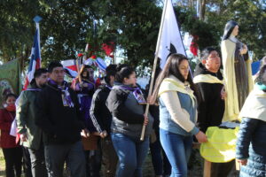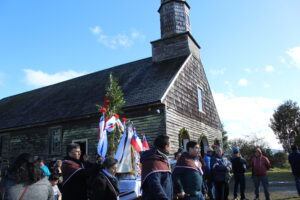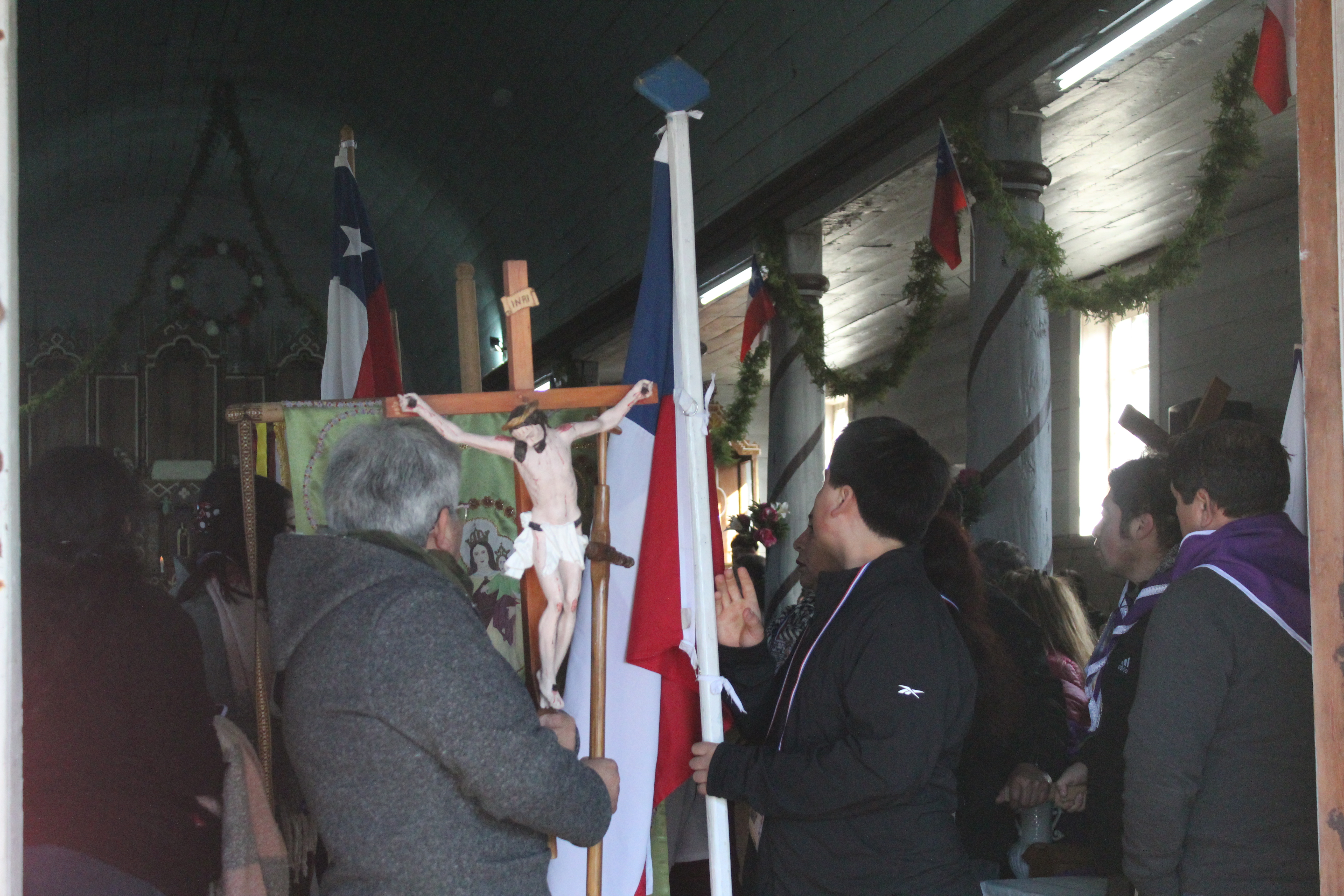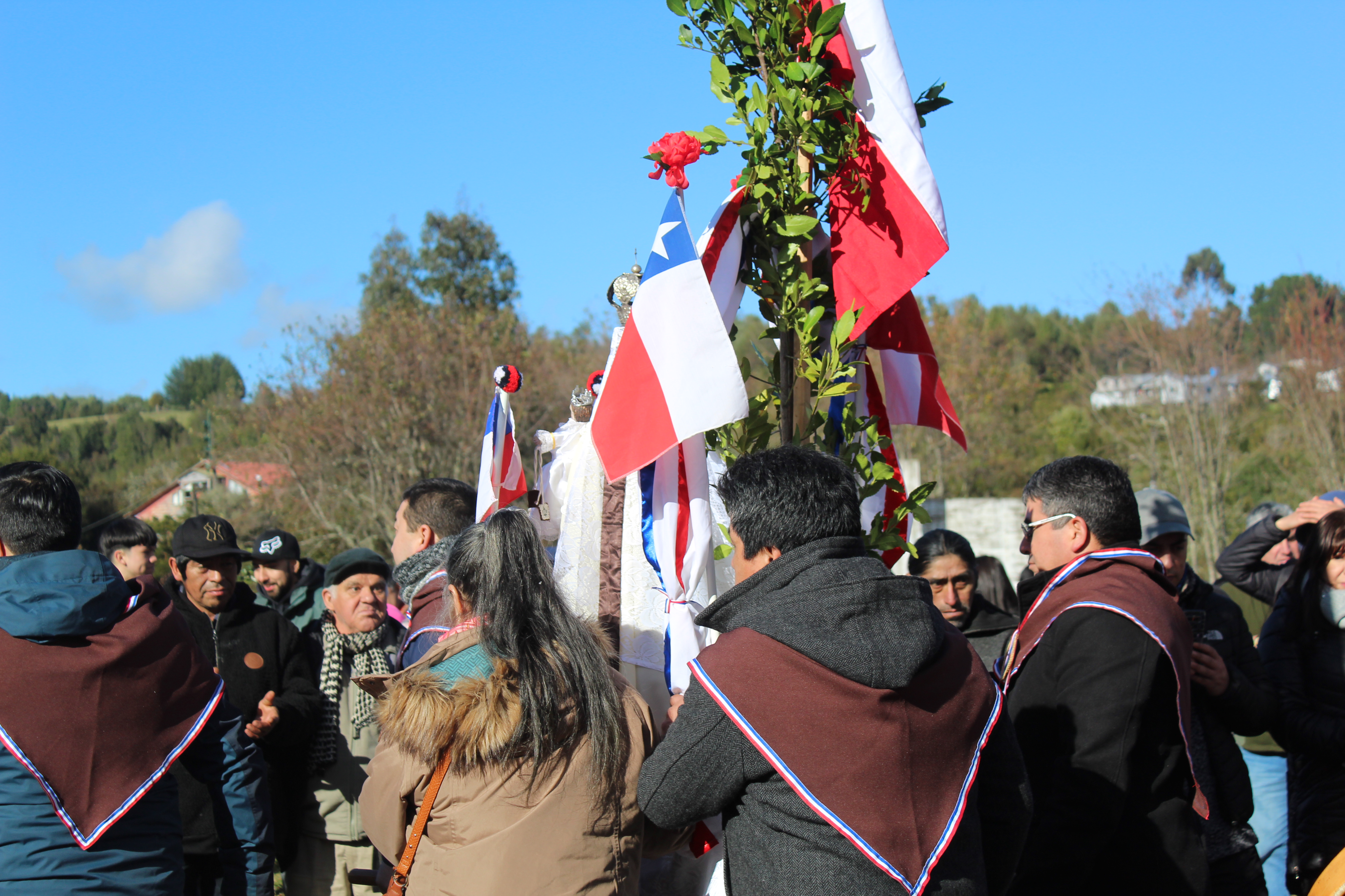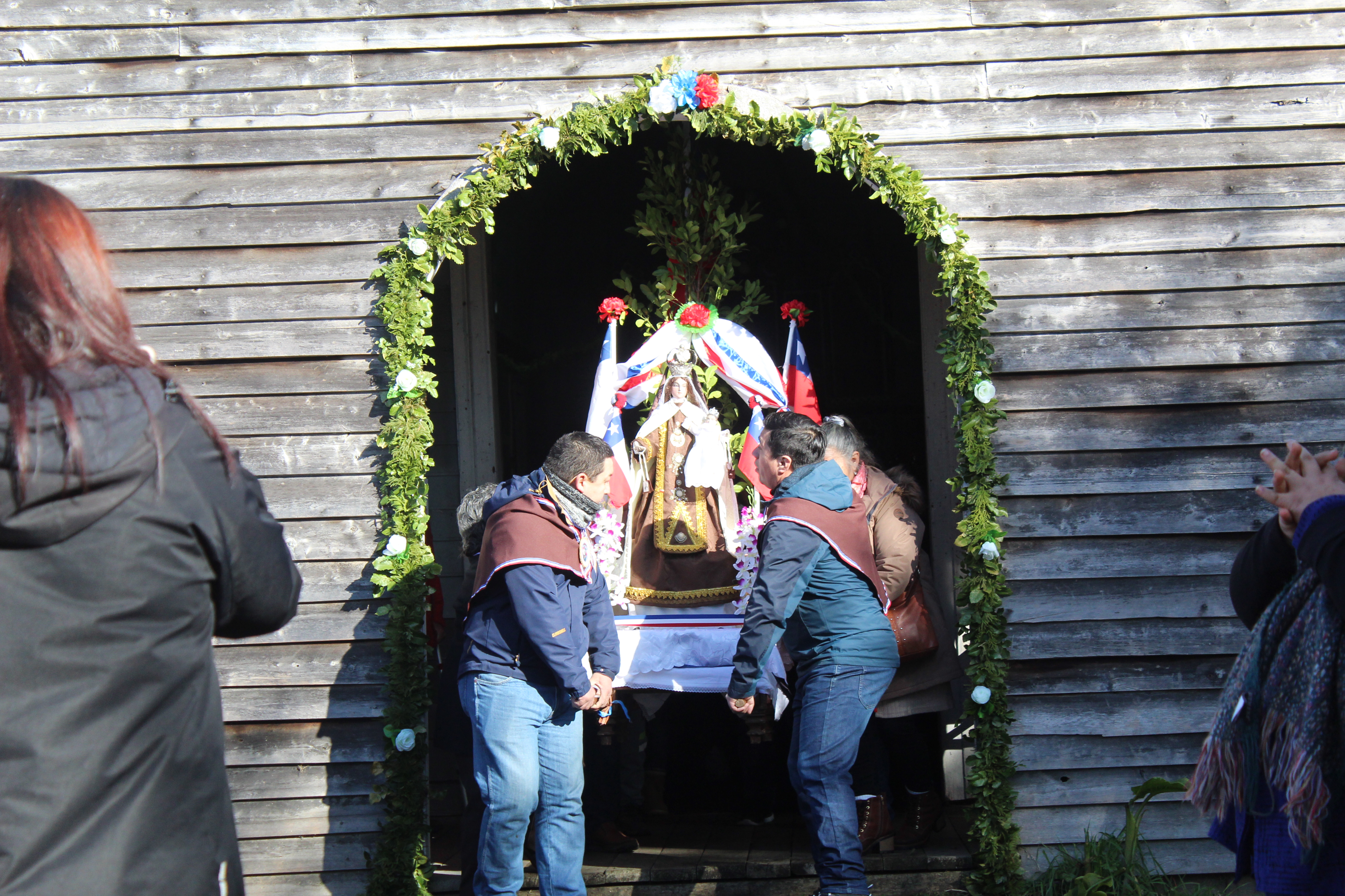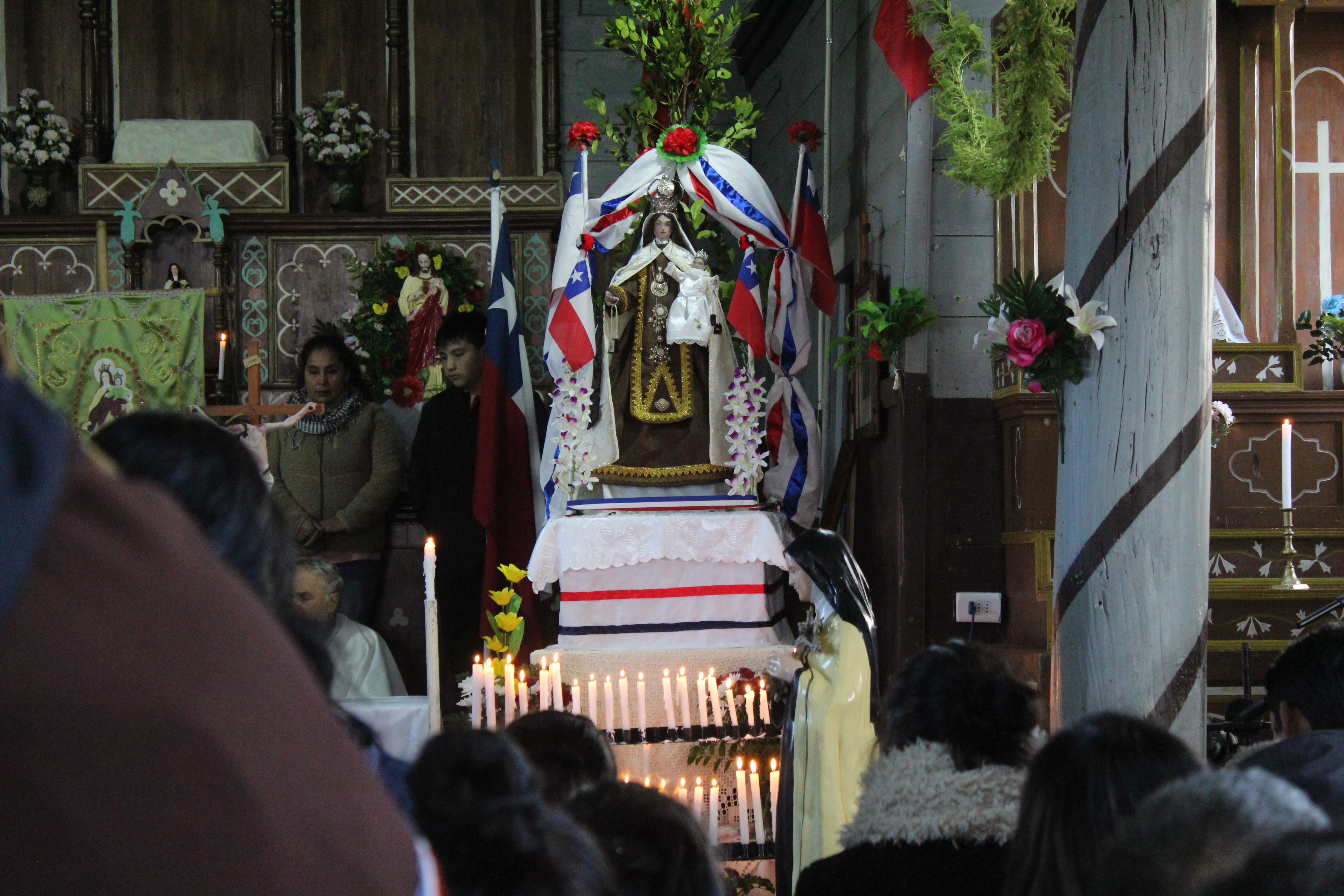 El 16 de julio a las 07:00 de la mañana y con la salida del sol se realiza la tradicional Diana donde se reúne en la capilla la fiscala, supremos, demás cargos y la comunidad en general toman sus respectivos estandartes, banderas de las 4 misas y entre oraciones y pasacalles se dirigen a la casa donde se hospedo el sacerdote. Allí se realiza la oración de la mañana, luego bailes y un compartir, posteriormente se regresa a la capilla, 11:00 de la mañana, antes que se inicie la Eucaristía se realiza el izamiento del pabellón patrio, donde se izan dos banderas chilenas una por la patria y la otra por nuestra Señora del Carmen patrona de Chile y se entona el himno nacional, terminado este acto se ingresa al templo con pasacalles, se realiza la Eucaristía luego se da paso a la tradicional procesión con todas las imágenes veneradas en estos días se hacen vueltas alrededor del templo y en la explanada los supremos ofrecen 2 pies de cueca y otros baile chilote que hace el pueblo rindiendo honor a la Carmelita, luego se ingresa al templo para la bendición final del sacerdote, además la fiscala junto a otros fiscales de distintas comunidades que asisten a esta fiesta y rezadoras entonan el “échanos tu bendición” de rodillas para rendir honor a la virgen del Carmen. Finalizando así esta hermosa festividad religiosa.