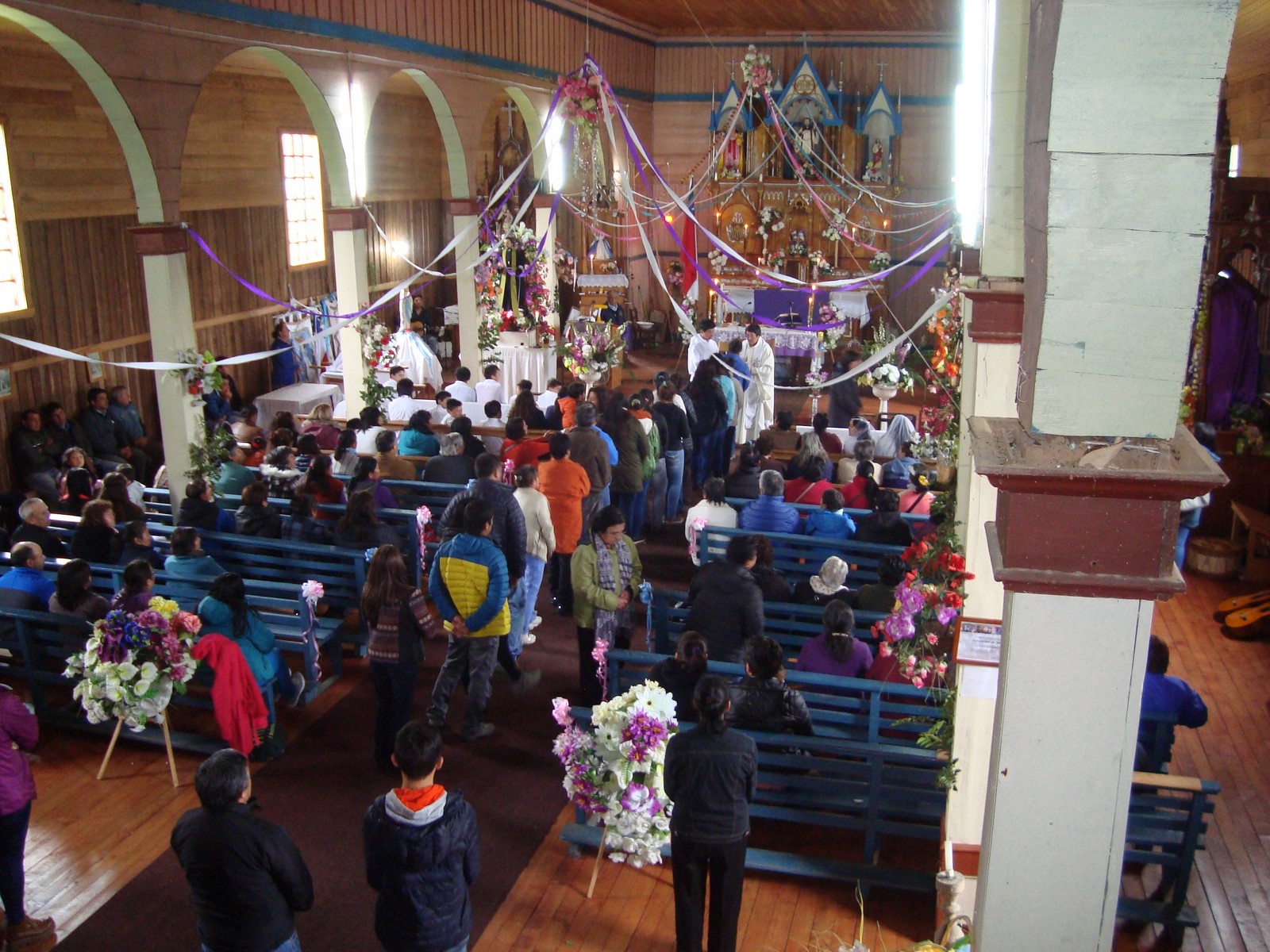 A la celebración se unieron las comunidades hermanas de Huenao, Huyar Alto, Huyar Bajo, Palqui y sede parroquial de Curaco de Vélez. La Eucaristía fue presidida por el párroco Padre Arturo Mansilla con un gran marco de feligreses y con los niños y niñas que recibieron el sacramento de la Eucaristía por primera vez. Al finalizar todos participaron de un compartir comunitario y luego la despedida de las comunidades presentes.
