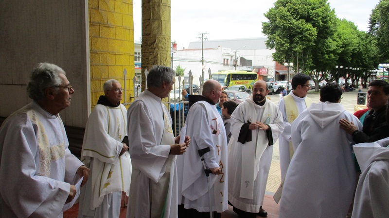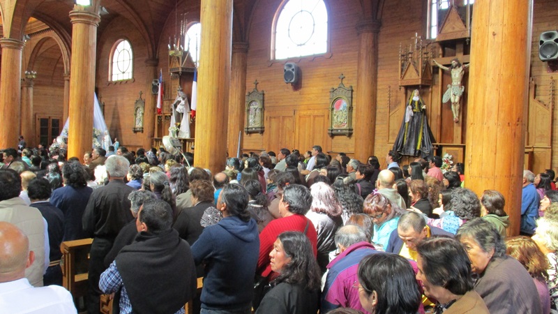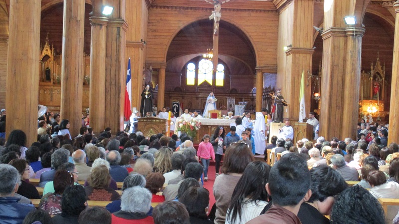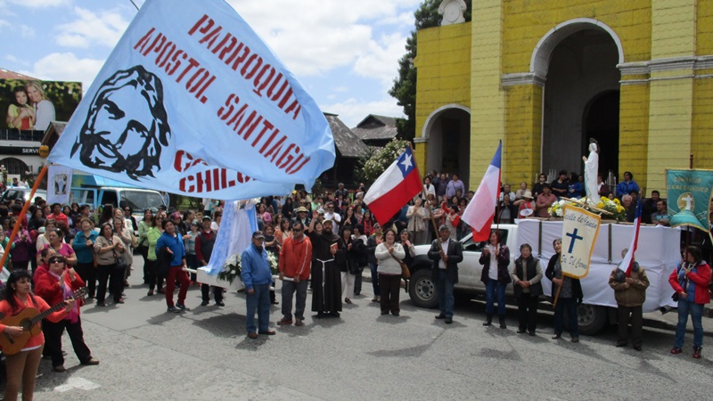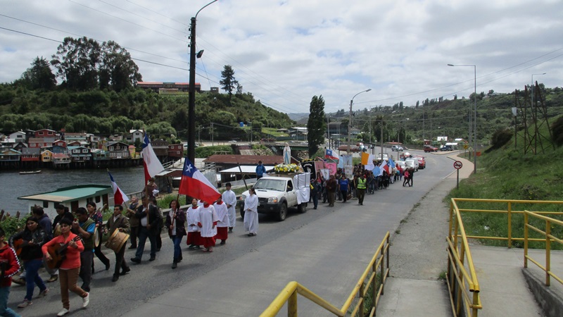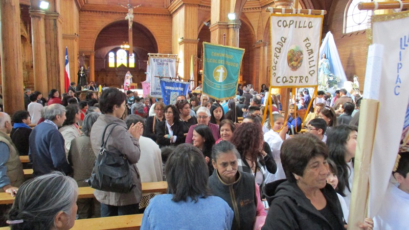Fue así como la parroquia Sagrado Corazón de Jesús peregrinó desde el cerro Millantue, por su parte la parroquia San Juan Pablo II, se congregó en el puente Gamboa y la parroquia Apóstol Santiago lo hizo desde la punta diamante, ingreso norte a la ciudad de Castro, todas las comunidades portando sus estandartes e imágenes en procesión se desplegaron por las calles de la ciudad convergiendo en el frontis de la Iglesia parroquial, llamada también Iglesia Franciscana, la que se ubica a un costado de la plaza de armas y con canciones y bailes se efectuaron alabanzas al Señor para recibir y acoger con gran alegría a todos los fieles.