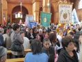 Al terminar la Eucaristía, fueron bendecidos los pendones que serán instalados en los Altares de cada Parroquia y Capilla como signo del trabajo personal que todos debemos efectuar “Abrir nuestros ojos para mirar las miseria del mundo, las heridas de tantos hermanos y hermanas privados de dignidad, y sintámonos provocados a escuchar su grito de auxilio. Nuestras manos estrechen sus manos, y atraigámoslos a nosotros para que sientan el calor de nuestra presencia, de nuestra amistad y de nuestra fraternidad”.