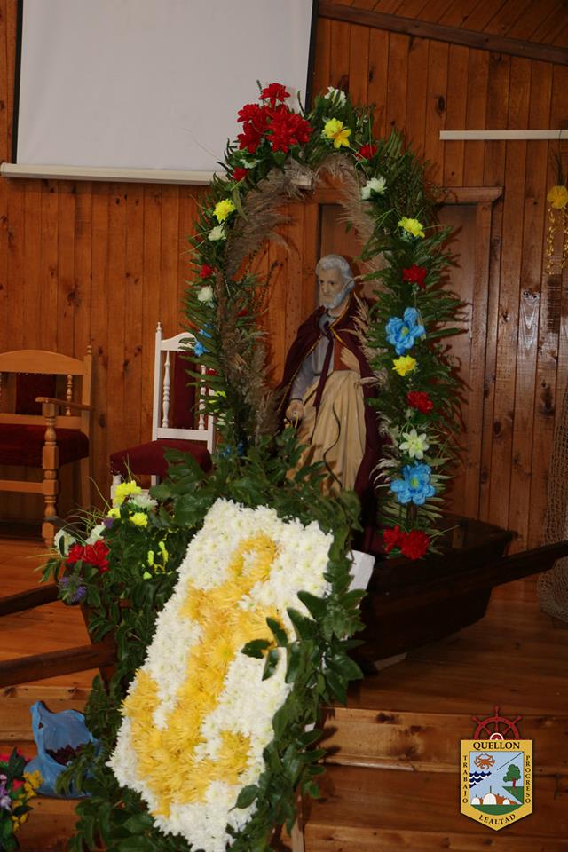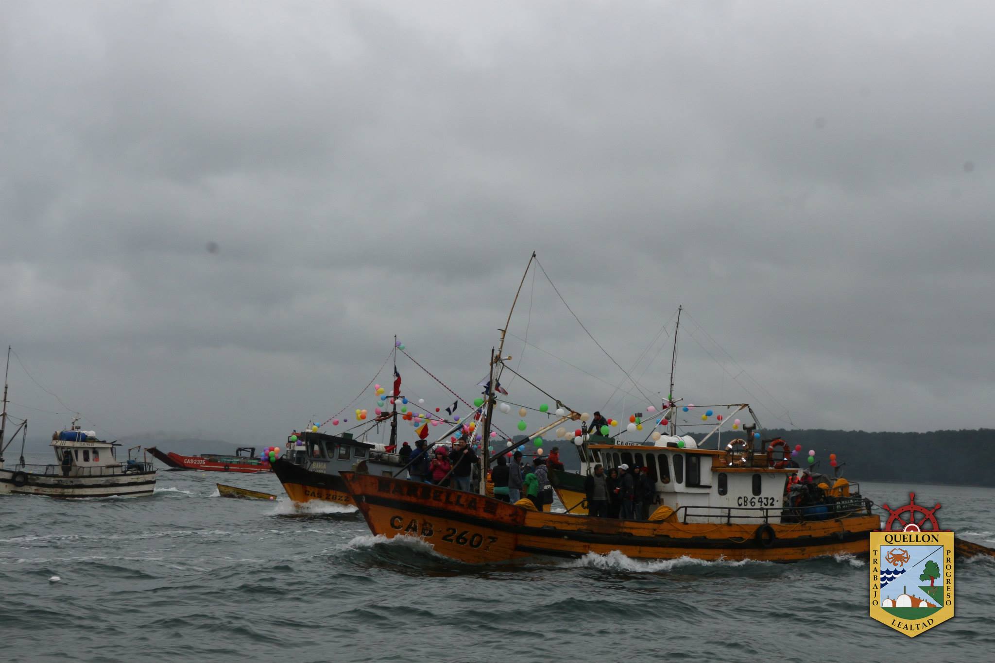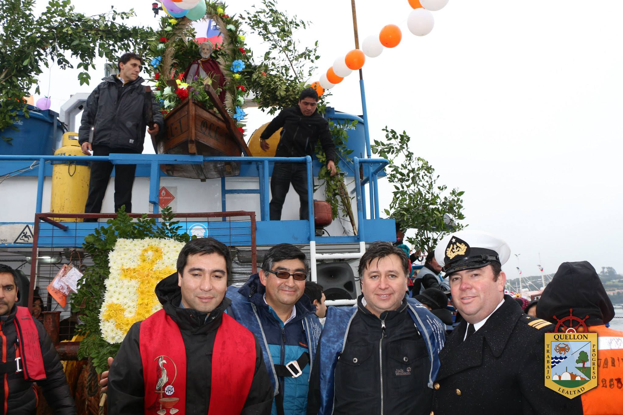 Terminada la  eucaristía, la imagen de San Pedro, salió en procesión por las calles de Quellón, llegando hasta el muelle fiscal, donde fue embarcado en la “Camanchaca” de propiedad de Salomón Almonacid, quien este año tuvo la misión de pasear la imagen por el puerto y agasajar a los invitados, autoridades y vecinos. Luego y como es tradicional el Párroco de Quellón, dirigió una oración y bendijo las ofrendas florales que fueron tiradas al mar en homenaje a los pescadores desaparecidos y muertos en sus labores en alta mar.