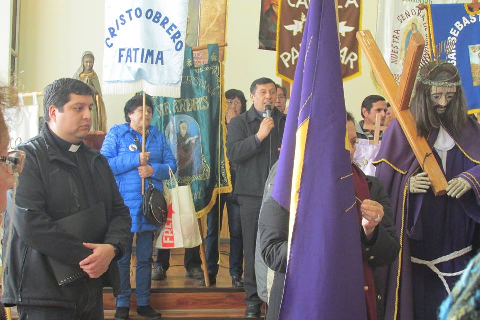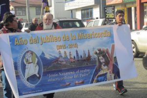 Luego después los peregrinos se dirigieron en procesión por la calles de Ancud hasta llegar a la Catedral, donde se les invitó a una celebración penitencial como preparación para pasar la Puerta Santa, y culminar con la celebración Eucarística presidida por el Obispo diocesano Mons. Juan María Agurto, acompañado por los demás párrocos y diáconos presentes.