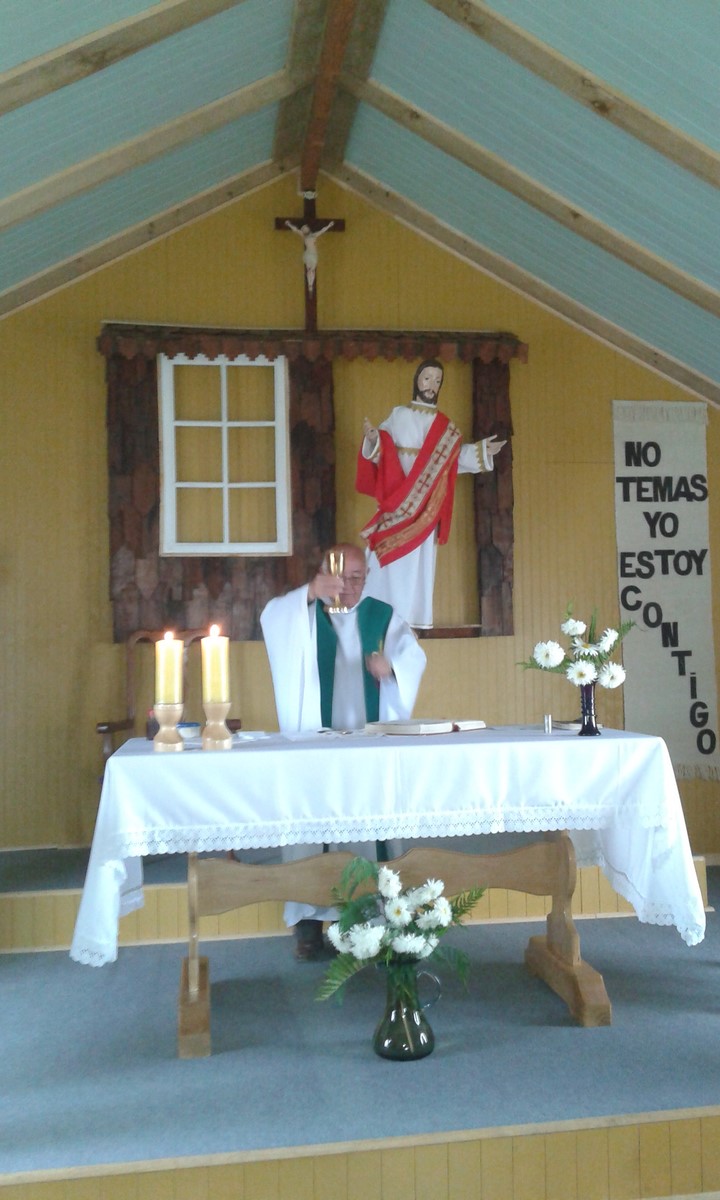 La Misa fue presidida por el párroco de Quemchi el P. Luis Angulo donde participaron las hermanas de la Congregación Franciscanas Penitentes Recoletinas quienes por dos semanas trabajaron en la misión en esta comunidad acompañadas por una misionaria laica. En la celebración un niño de 12 años que participó de las actividades misioneras recibió el sacramente del bautismo.
