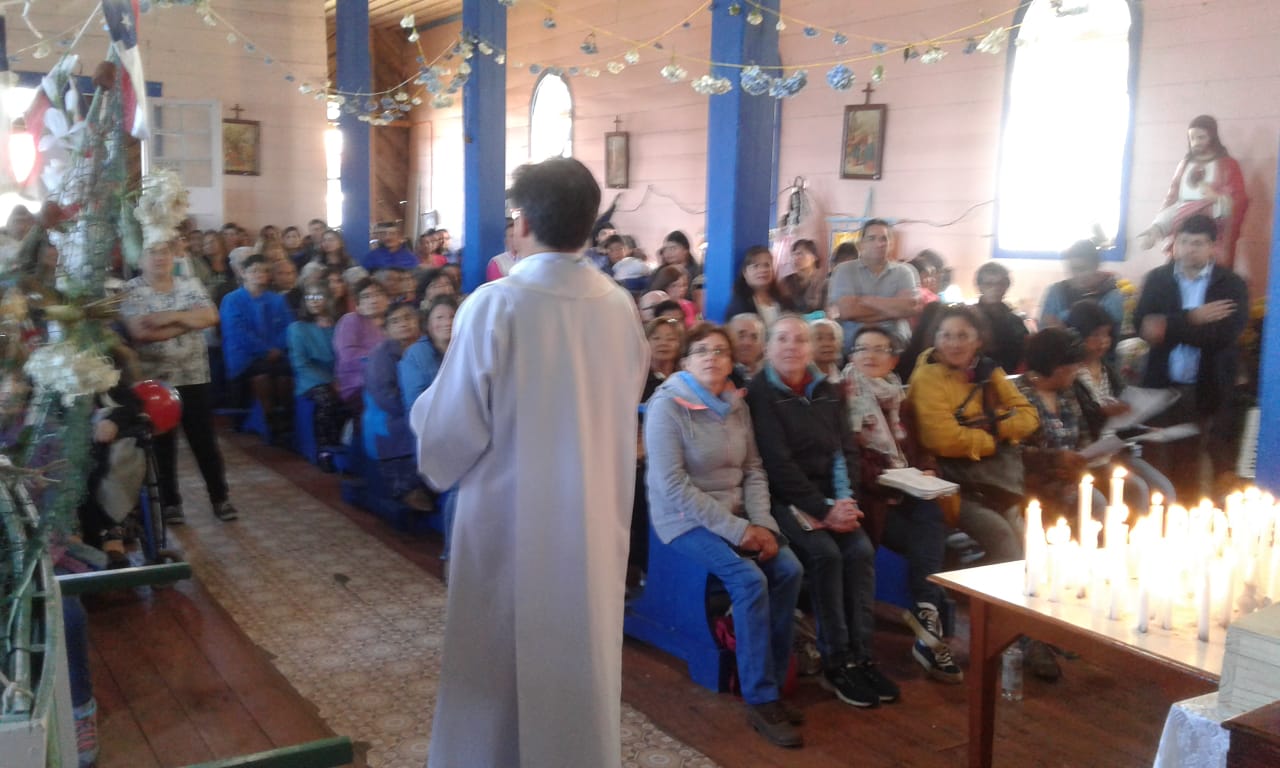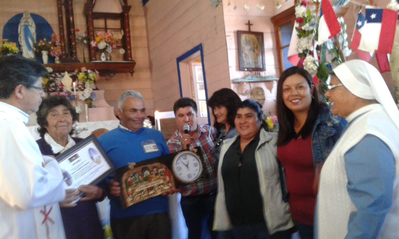 El 11 le correspondió la fiesta de la Patrona de la comunidad, Nuestra Señora de Lourdes.  Se celebró muy solemnemente,  como ella, nuestra madre, lo merece.  Nos acompañó mucha gente especialmente jóvenes que llegaron de distintos punto del archipiélago y otros.  Se destacó el recogimiento y la participación tanto en la misa como en la procesión a la gruta. Agradecemos al grupo musical que llegó desde Achao a reforzar el coro. En este día además se hizo un reconocimiento a don Humberto Paredes por sus 46 años de servicio perseverante, como fiscal de la comunidad.