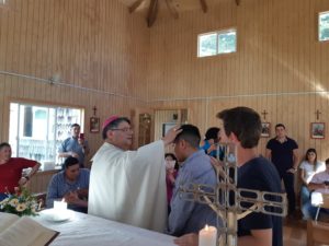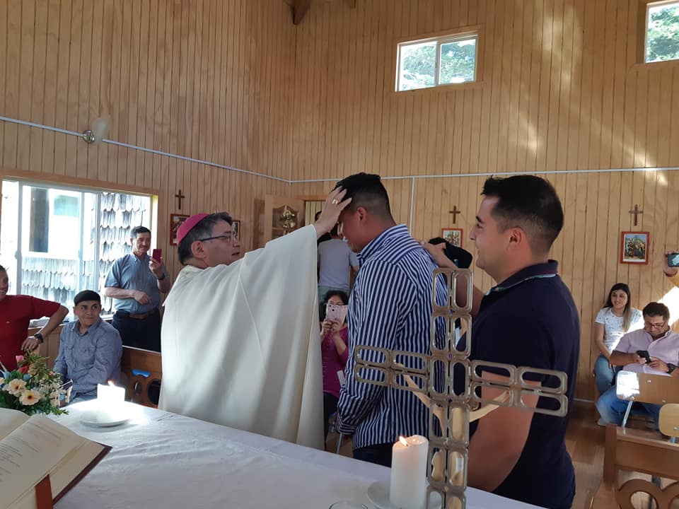 El pasado domingo 09 de Febrero, fue un día muy significativo que vivió la familia de la Esperanza en la Fazenda de Chiloé, con una Eucaristía presidida por Mons. Juan María Agurto donde cuatro jóvenes recibieron sus sacramentos y en la misma ocasión Ermis Elias concluyó su año de recuperación en este lugar de gracia. Domingo que coincidió además con el día que los jóvenes recibieron la visita de sus familiares, algunos por primera vez después de esperar tres meses en los cuales no se recibe visitas, por ser el primer periodo de adaptación.