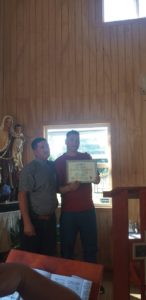 A su vez Marcio Orth, coordinador de la Fazenda Chiloé, al despedir Elias, quien regresa a su hogar con su familia, como un hombre nuevo, renovado por el Espíritu Santo, expresó “la primera etapa de tu recuperación está hecha acá adentro durante este año, pero ahora viene la prueba, el desafío grande, mantenerse bien allá afuera donde los leones nos quieren devorar, así que fuerza y busca ser esta sal y luz, te felicito porque yo sé qué es luchar todo un año para un día como hoy recibir este certificado, que es un pedazo de papel, pero que para nosotros que vivimos este proceso de recuperación es muy importante.” Elias acompañado de su papá, dieron las gracias a Dios, a la Fazenda y a todas las personas que les brindaron ayuda durante este tiempo, estaban muy contentos y emocionados.