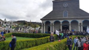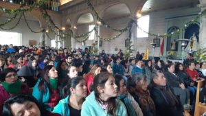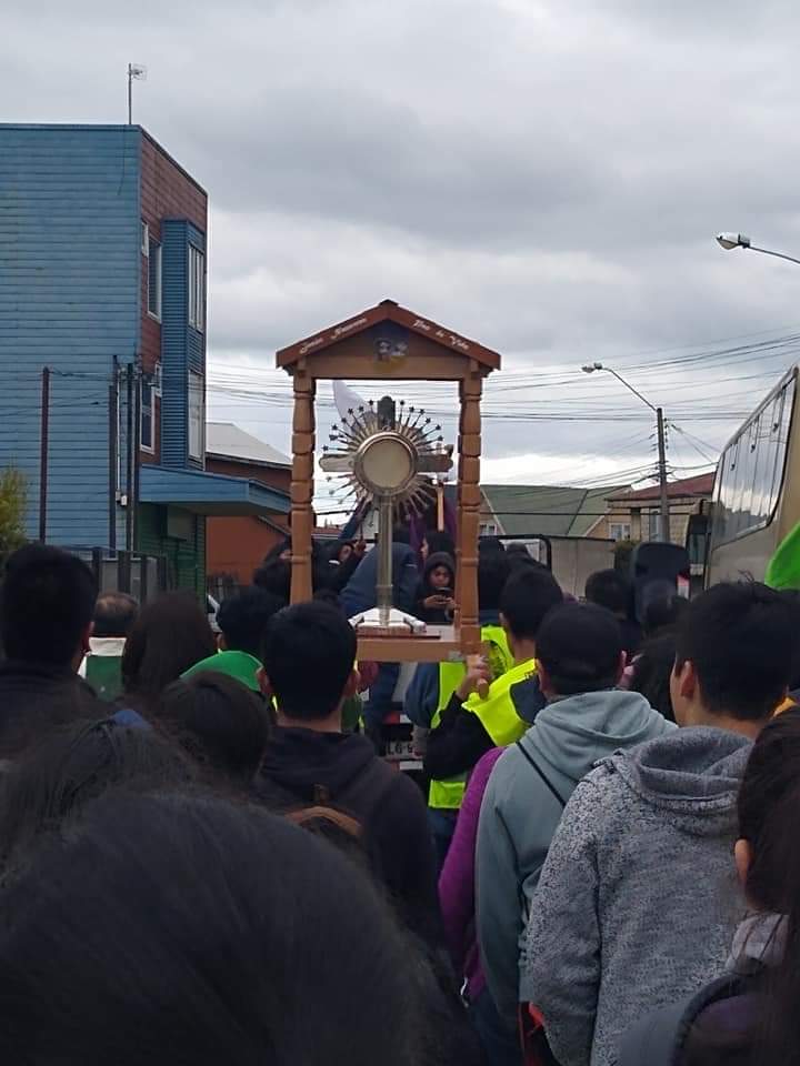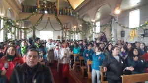 Luego los participantes caminaron como 7 km, cada uno haciendo este peregrinar con diferentes intenciones en su corazón. Finalmente llegando al centro de la ciudad de Castro rumbo al Templo San Francisco, donde vivieron un momento de encuentro personal, intimo con Jesús Pan de vida, en la Adoración al Santísimo, donde recibieron la bendición de Dios por manos del Obispo diocesano.