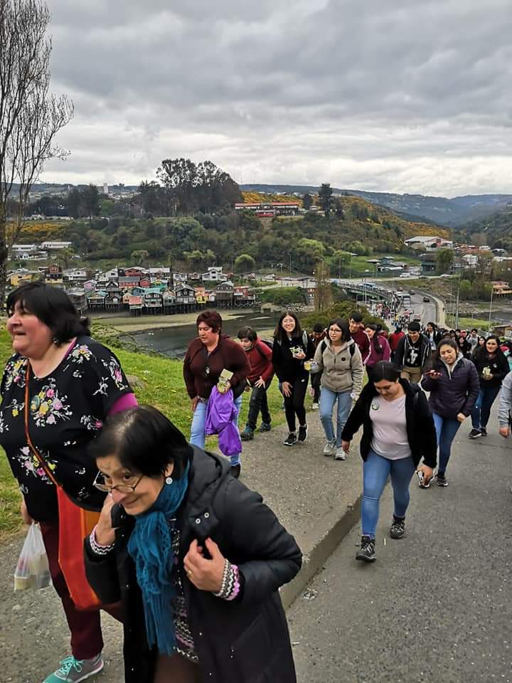 “Para mí es una experiencia muy bonita, he venido 10 años ya, fallé solamente un año, tengo 65 años y no me hace pesado caminar, lo que sí me gustaría es que cada vez más jóvenes participen y se motiven, el ambiente que se vive es muy agradable y motivador.” María, Parroquia de Chonchi