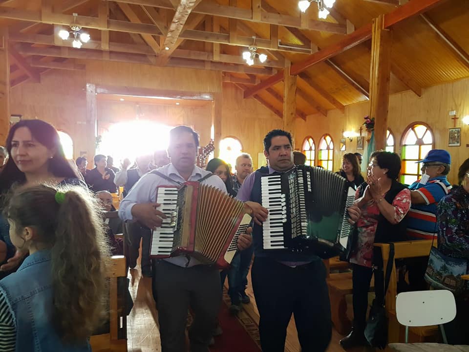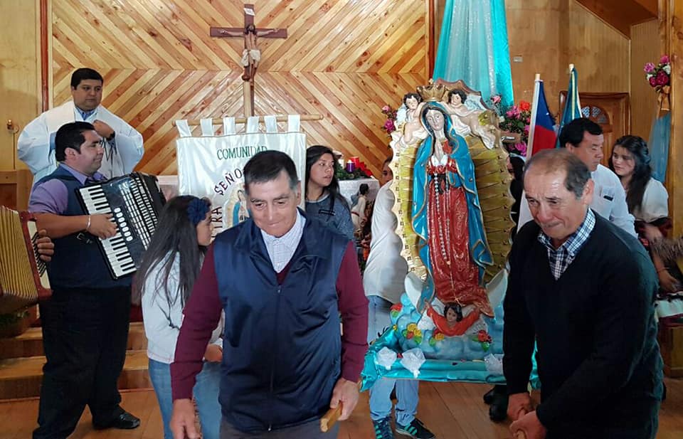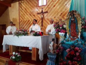 Con una Eucaristía la Comunidad Nuestra Señora de Guadalupe, perteneciente a la Parroquia El Sagrario de Ancud, celebró su patrona el día 12 de Diciembre. La misa fue presidida por el párroco el Padre Alex Gallardo, acompañado por los Diáconos Carlos Gomez y Nibaldo Quezada, junto a un gran número de devotos, venidos también de otras comunidades. Como es tradicional se realizó la procesión con pasacalles, con los niños que le bailaron cueca a la Virgen y también otro grupo de niños del Colegio Seminario Conciliar que este año vinieron a bailar con trajes típicos mejicanos, a la Guadalupana.