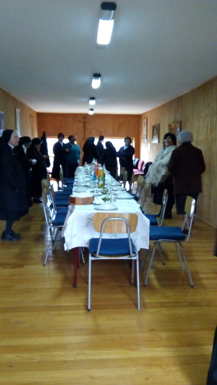 Tuvimos una atención especial con el almuerzo, que fue preparado por nuestro querido Padre Obispo, Juan María, una “exquisita cazuela de campo”, el cual disfrutamos mucho de las ensaladas y un rico postre de helado. Como sobre mesa tuvimos un compartir de inquietudes, consultas de las últimas preocupaciones de la Diócesis, que como pastor le atañe. Estamos agradecidas tremendamente este gesto de servicio, detalles y cercanía de nuestro Padre. Muchas gracias padre, que Dios bendiga lo bueno que entrega cotidianamente y por esa maravillosa disposición de acogernos.