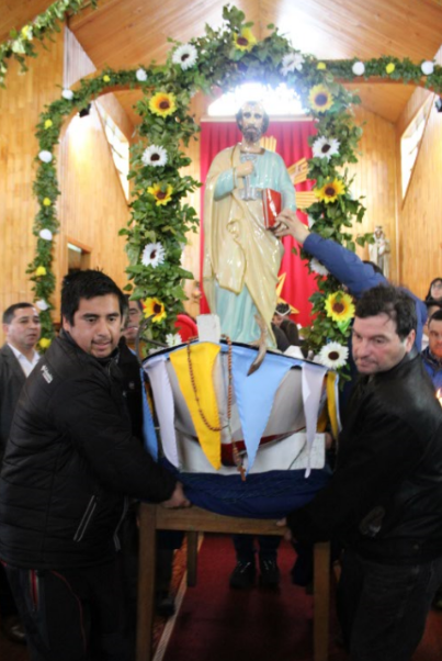 De esta manera, por medio de una Eucaristía que fue presidida por el Padre Edito Rain, en donde se celebró la primera comunión de 7 jóvenes, se dio paso en la tarde a la procesión del Santo por el pueblo y posteriormente por la bahía de Melinka, arriba de botes y lanchas que rendían homenaje a su Patrono.