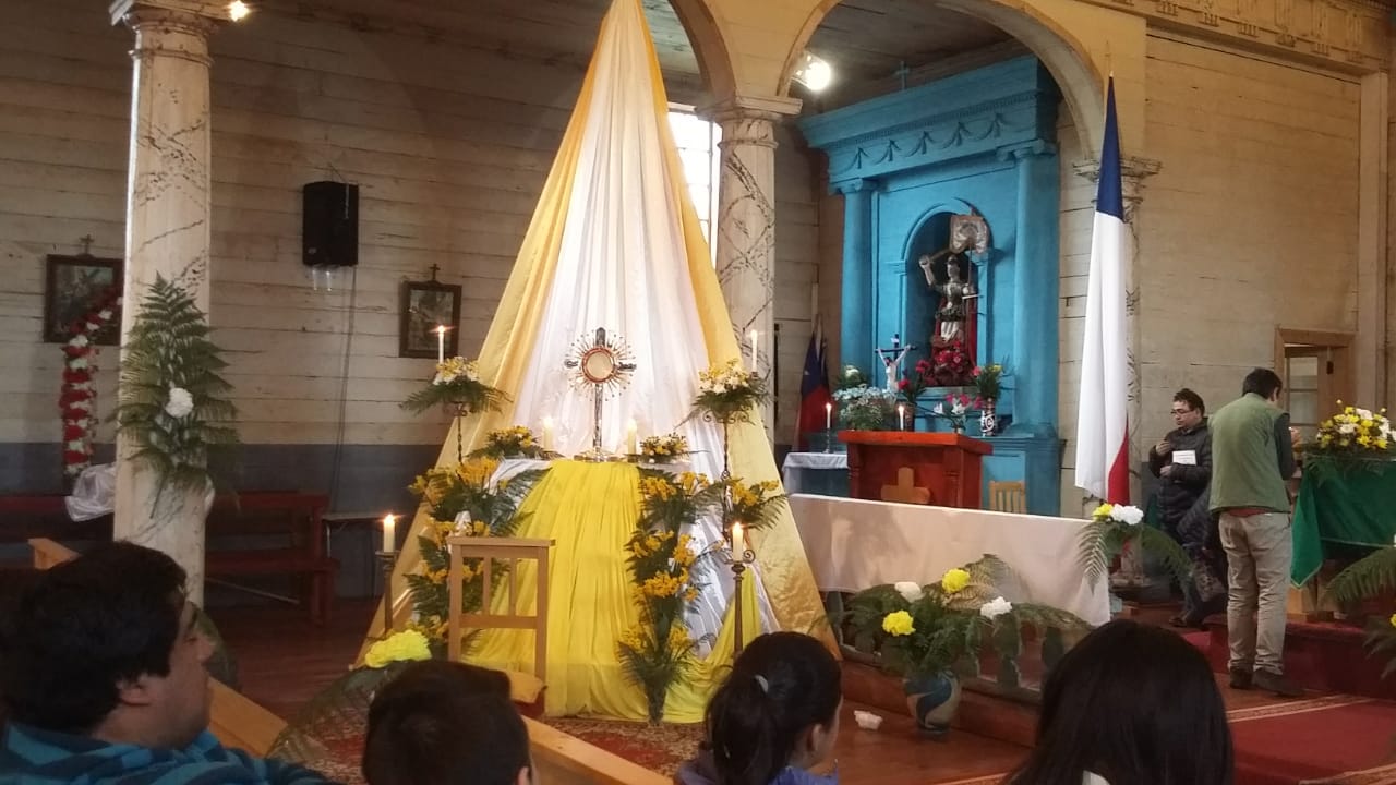 Siguiendo el itinerario del Congreso Eucarístico Nacional 2018 (CEN), este domingo 05 de Agosto, Jesús Sacramentado visitó la Iglesia Nuestra Señora de Gracia de Nercón. Dando un signo de fe la comunidad recibió en procesión a Jesús, recorriendo las calles que acceden al Templo, con cantos al Espíritu Santo caminaron con devoción para después celebrar la Santa Misa.