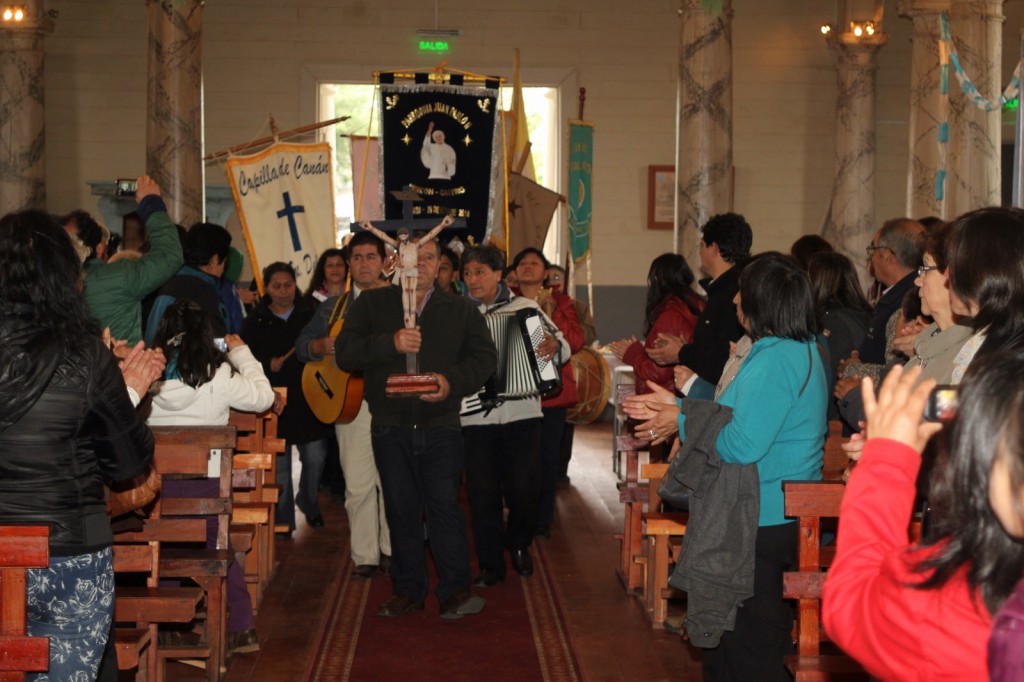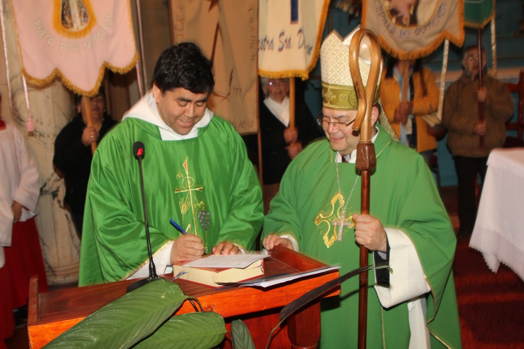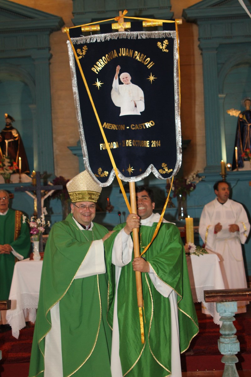 El pasado 26 de octubre se realizó en la Iglesia Nuestra Señora de Gracia de Nercón la ceremonia de instauración de la Parroquia San Juan Pablo II, ubicada entre las comunas de Castro y Chonchi. La Eucaristía fue presidida por el P. Obispo Juan María Agurto y concelebrada por el nuevo Párroco de dicha parroquia el Pbro. Edito Rain, acompañados de feligreses representantes de las diferentes capillas que pertenecen a la parroquia.