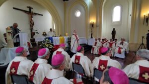 La Eucaristía se desarrolló en la Casa de ejercicios espirituales de Padre Hurtado, al finalizar la semana de retiro del Episcopado nacional -en la que participaron la mayor parte de los obispos en ejercicio y algunos obispos eméritos- el que fue predicado por el cardenal Daniel Sturla sdb, arzobispo de Montevideo (Uruguay).