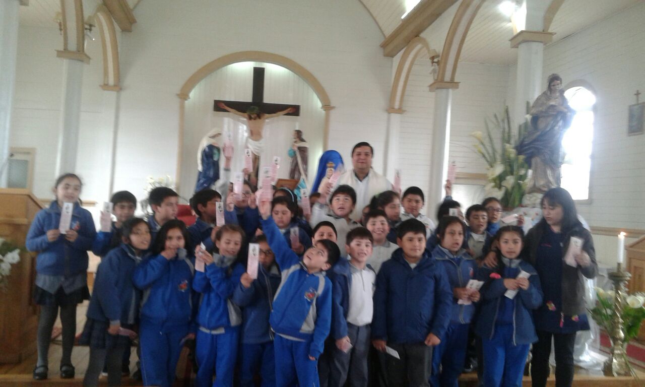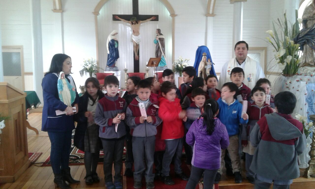 El día martes 7 de Noviembre a las 10,30 de la mañana, en la sede de la Parroquia El Sagrario de Ancud, en la Iglesia San Francisco, se reunieron las Escuelas que están dentro del territorio parroquial, junto al párroco Padre Alex Gallardo, para dar inicio al Mes de María.