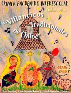 Actividad que se desarrollará en la Iglesia de Achao, el 6 de Diciembre a partir de las  17:30 horas. Los niños estudiantes de Achao los esperan! Para ir llenando nuestros corazones con el verdadero sentido de la navidad y rememorando los cantos tradicionales de Chiloé los cuales eran entonados en las antiguas novenas familiares o de alguna comunidad religiosa en honor al Niño Dios.