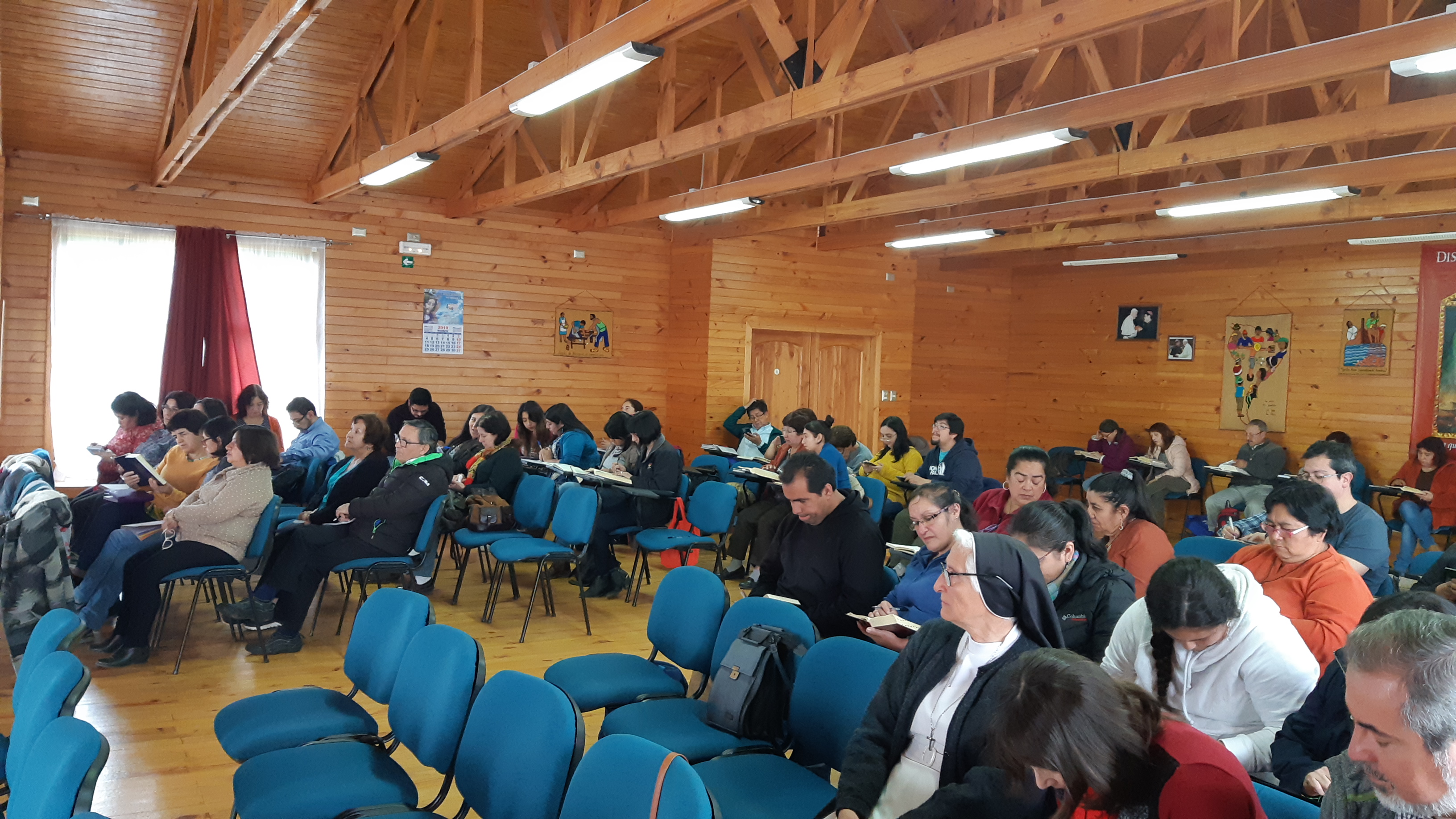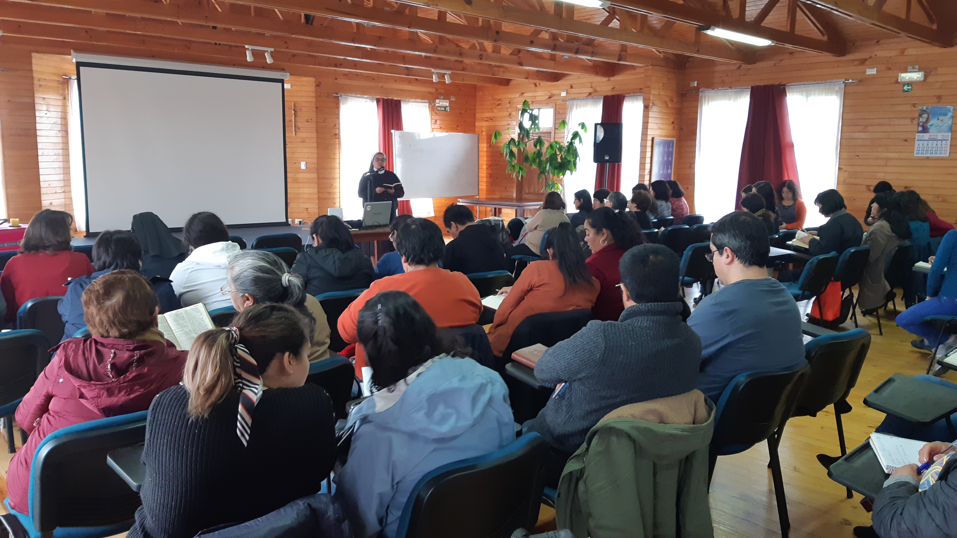 El encuentro, que fue impartido por la Hna. Cecilia Osses perteneciente a la Congregación de Misioneras Catequistas de Boroa, directora del Departamento de Evangelización y Catequesis de Concepción y coordinadora de la catequesis de las Diócesis de la zona sur del país, reunió aproximadamente 60 personas en la Casa de Retiro de Castro.