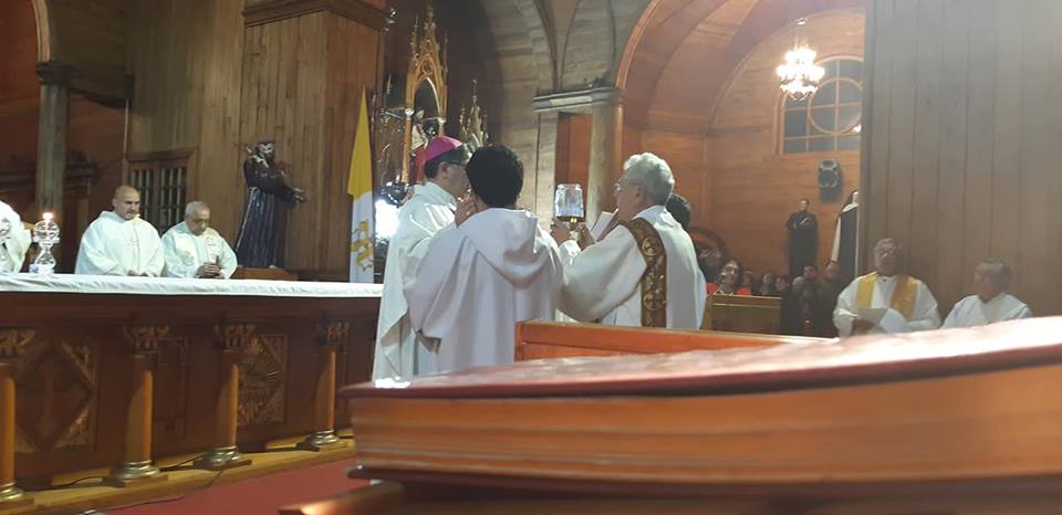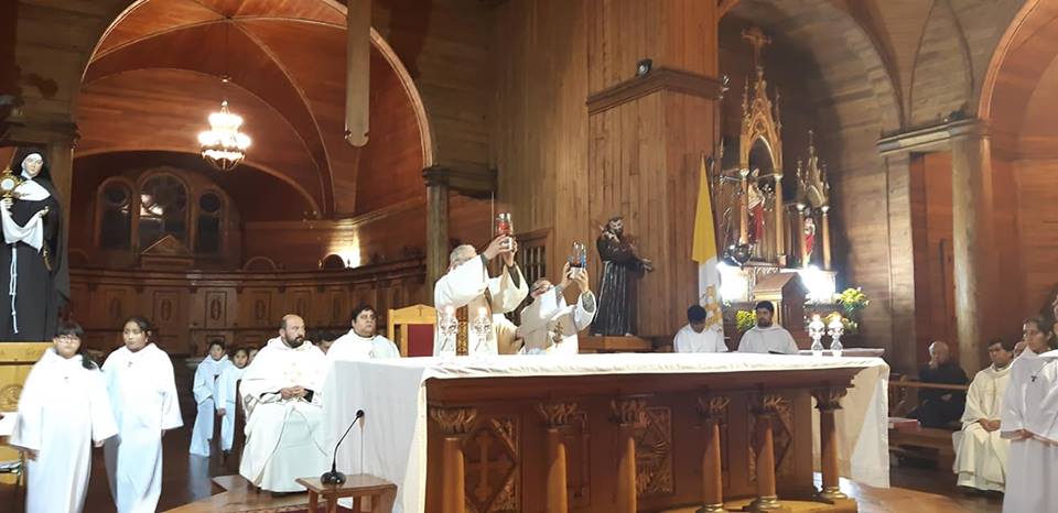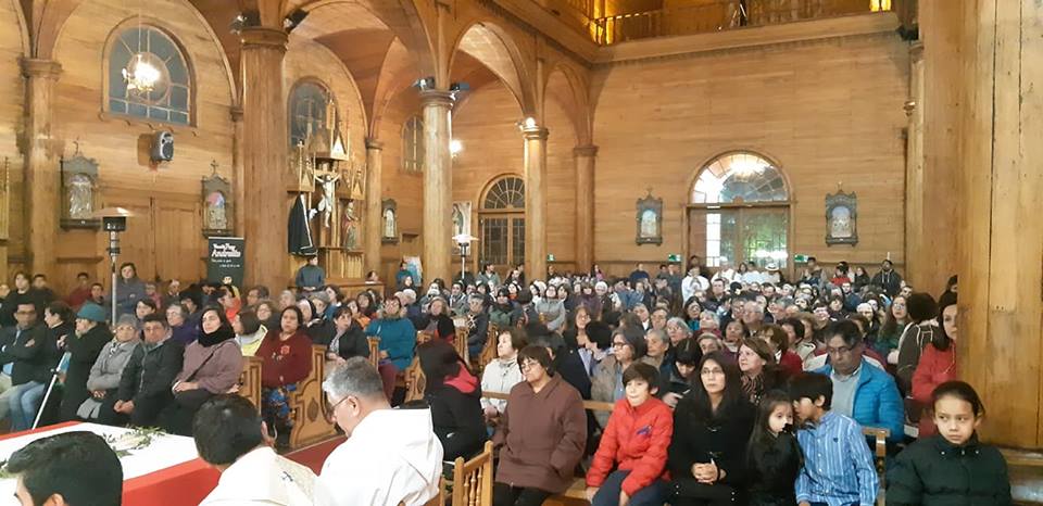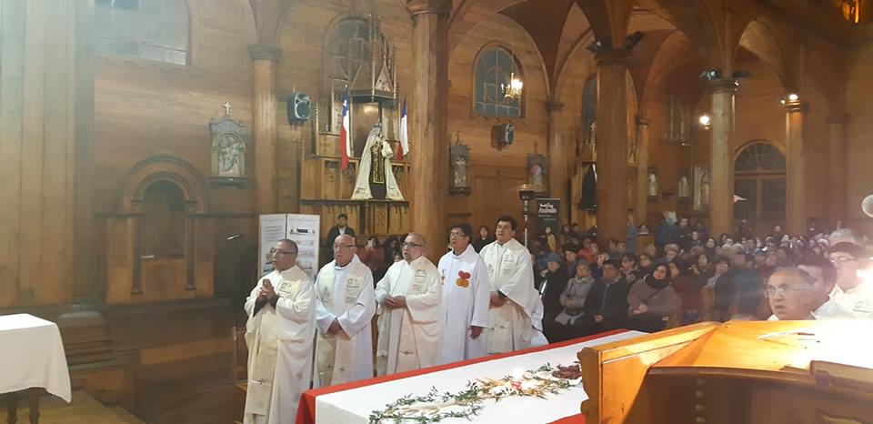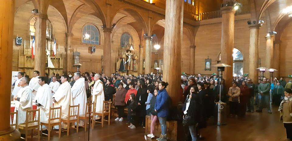 El día miércoles santo, 17 de Abril, se repletó el Templo San Francisco en Castro, para celebrar la Misa Crismal, la cual fue presidida por el Padre Obispo Juan María Agurto, acompañado del clero diocesano en su case totalidad.