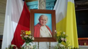 Al comenzar la celebración se agradeció al Creador por este aniversario y, a la vez, por el camino compartido y recorrido, por toda la comunidad. La Parroquia está bajo la advocación de San Juan Pablo II y de la mano de la Virgen María, la comunidad sigue los pasos de Jesús.