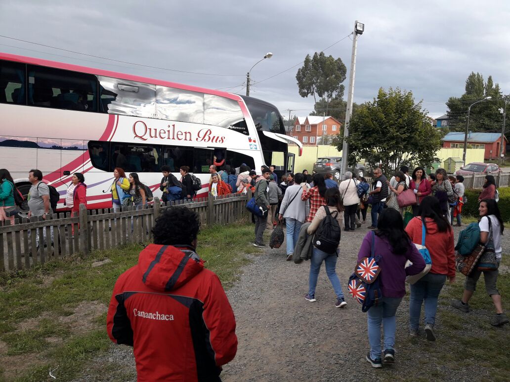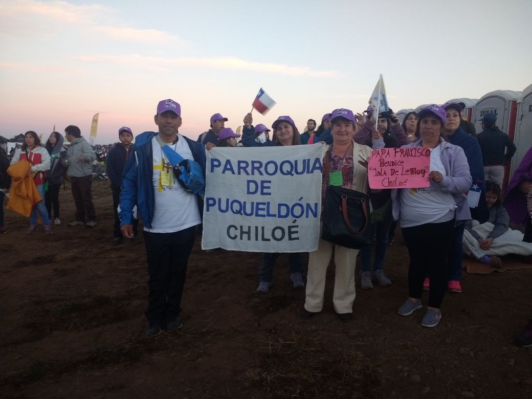 Desde nuestra zona cordillera partieron desde Chaiten 36 peregrinos, y desde el Archipiélago de Chiloé juntando los peregrinos que fueron en los grupos de parroquias y quienes pudieron ir de forma independiente, participaron alrededor de 470 personas. Con gran entusiasmo la delegación viajó rumbo a Temuco, saliendo en la noche anterior para llegar en la madrugada del día 17 de Enero, sin importar las dificultades del camino, el cansancio, el frío de la noche y el calor del día, todos unidos llegaron a alabar al Señor Dios por la oportunidad de ver el Vicario de Cristo, oportunidad que para muchos podría ser la única de sus vidas.